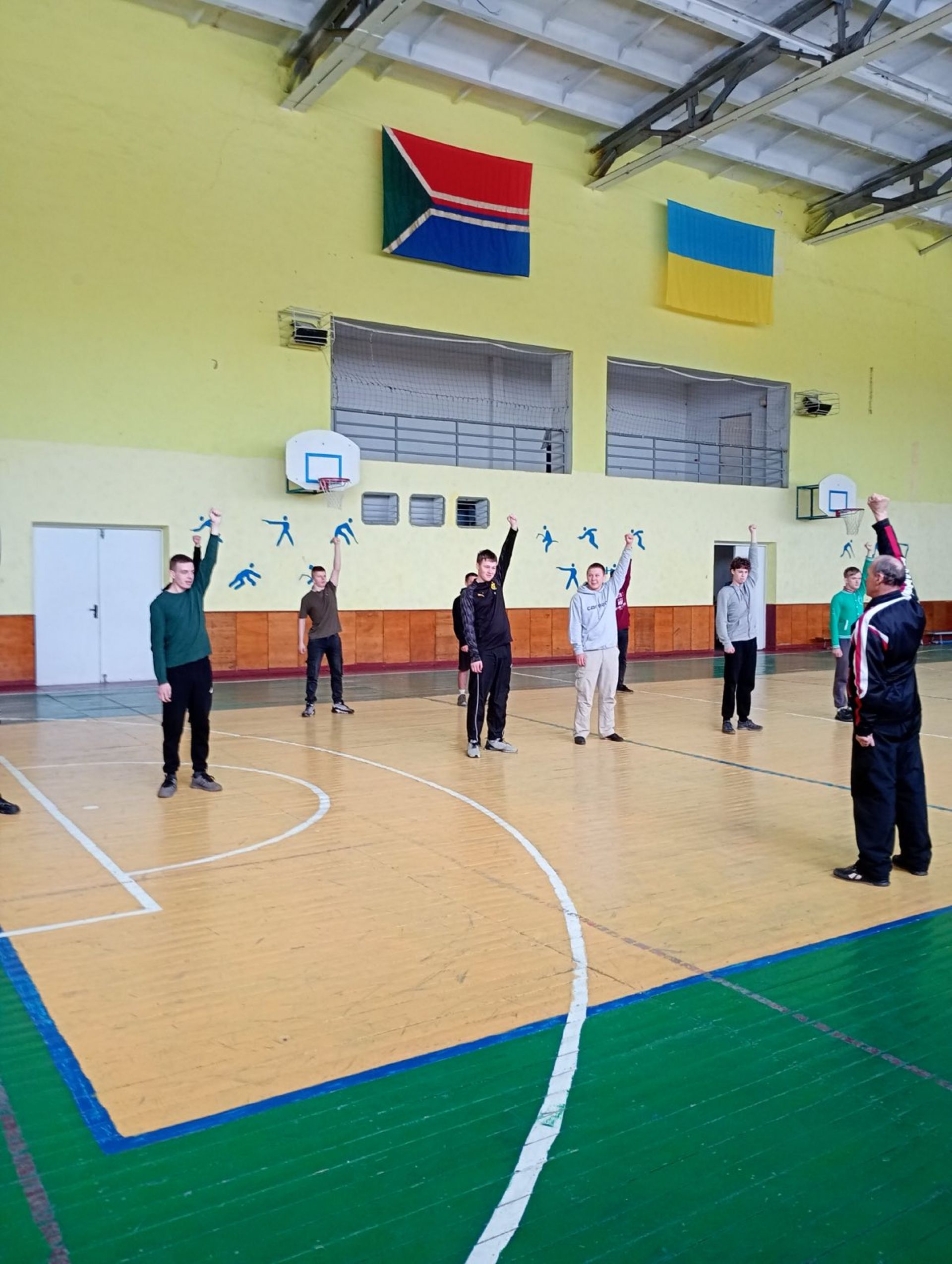 Цікаві естафети та руханки провели викладачі Леонід Трончук та Неля Бандурко