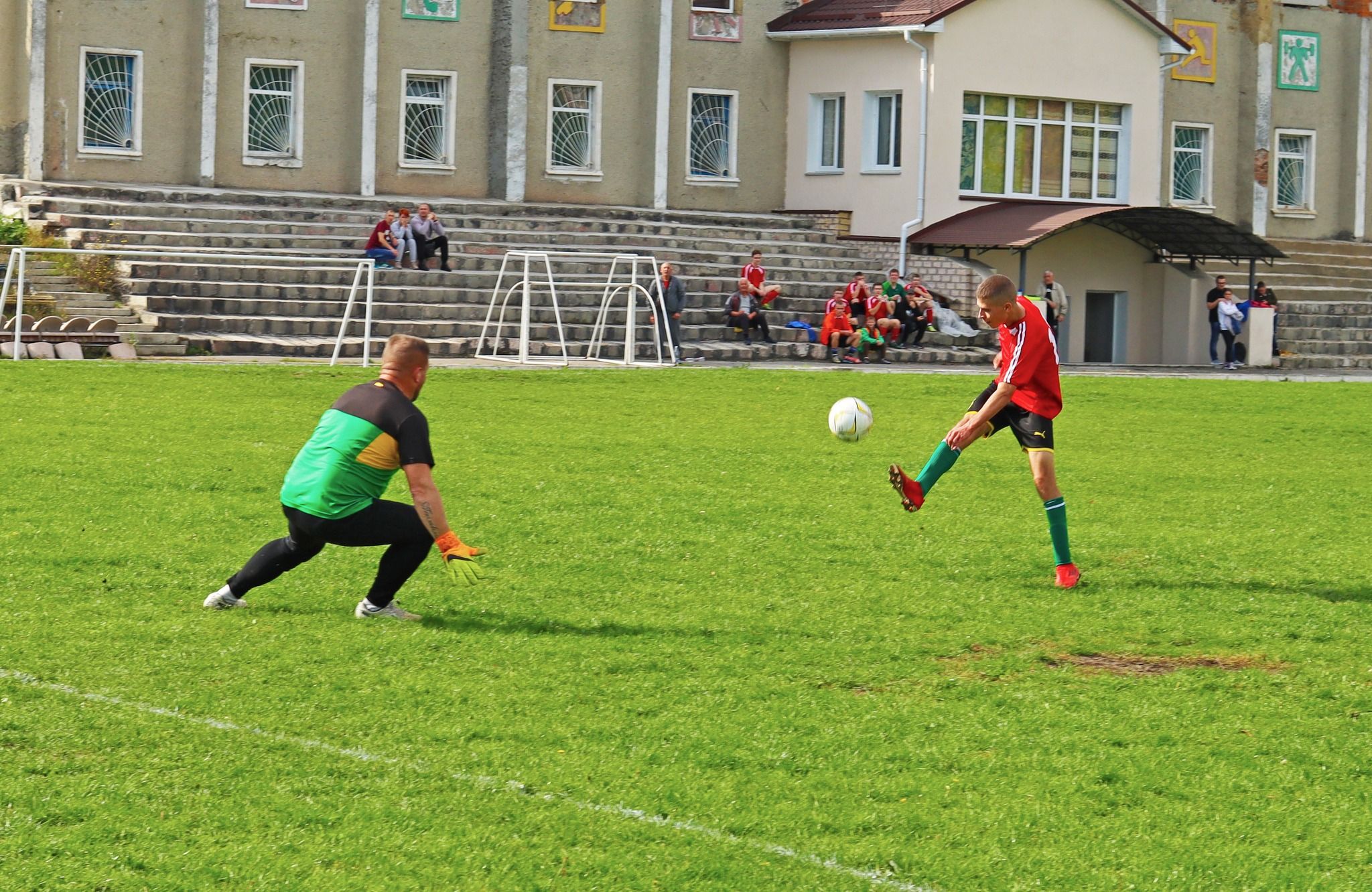 Матч почався за ігрової переваги футболістів «Променя». Вони в дебюті матчу захопили ініціативу і вже на 5 хвилині повели в рахунку. Гол забив нападник «Променя» Андрій Хрищенюк. Гра під диктовку господарів йшла до 15 хвилини першого тайму. Потім в одному з епізодів Глухівчани необережно зіграли у своєму карному майданчику проти нападника гостей і рефері матчу вказав на точку. Був там стовідсотковий пенальті, як кажуть арбітру видніше він в тому епізоді був найближче до м’яча.