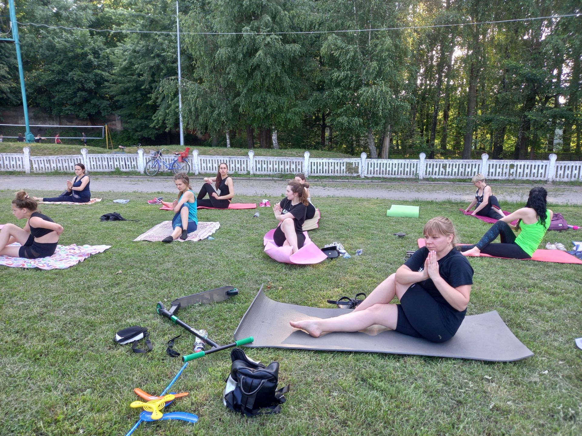 На одне з занять завітали і ми. Першими прийшли дівчата. Вони стали на полі, але вирішили, що обрали невигідну локацію — сонце розвернеться і буде пекти. Тому забирають свої речі і ховаються в тінь. Розкладають на траві свої каремати і ковдри. Потроху починають розминати руки і спілкуються. Цікавляться один в одного, хто де купив необхідний реквізит для заняття.