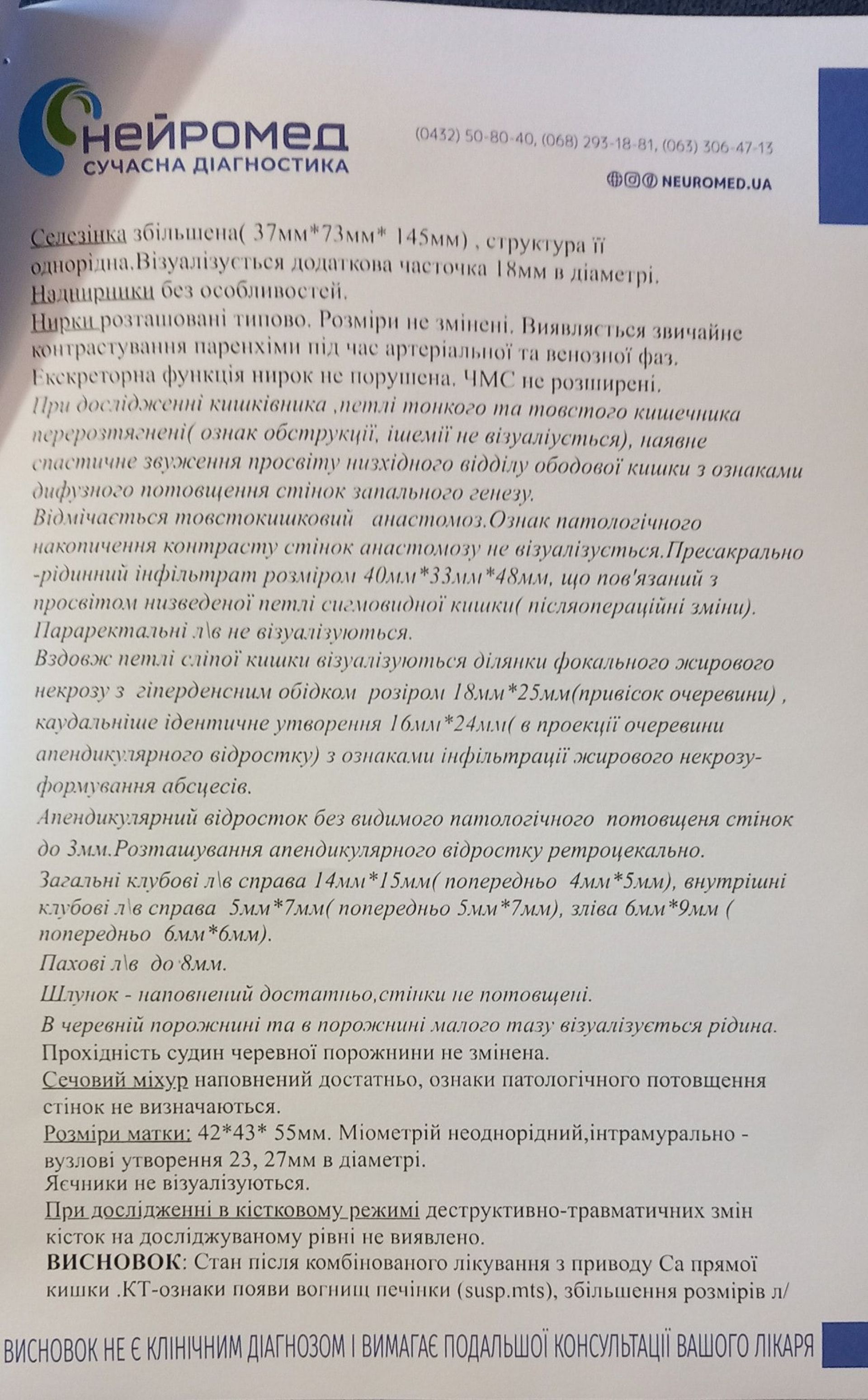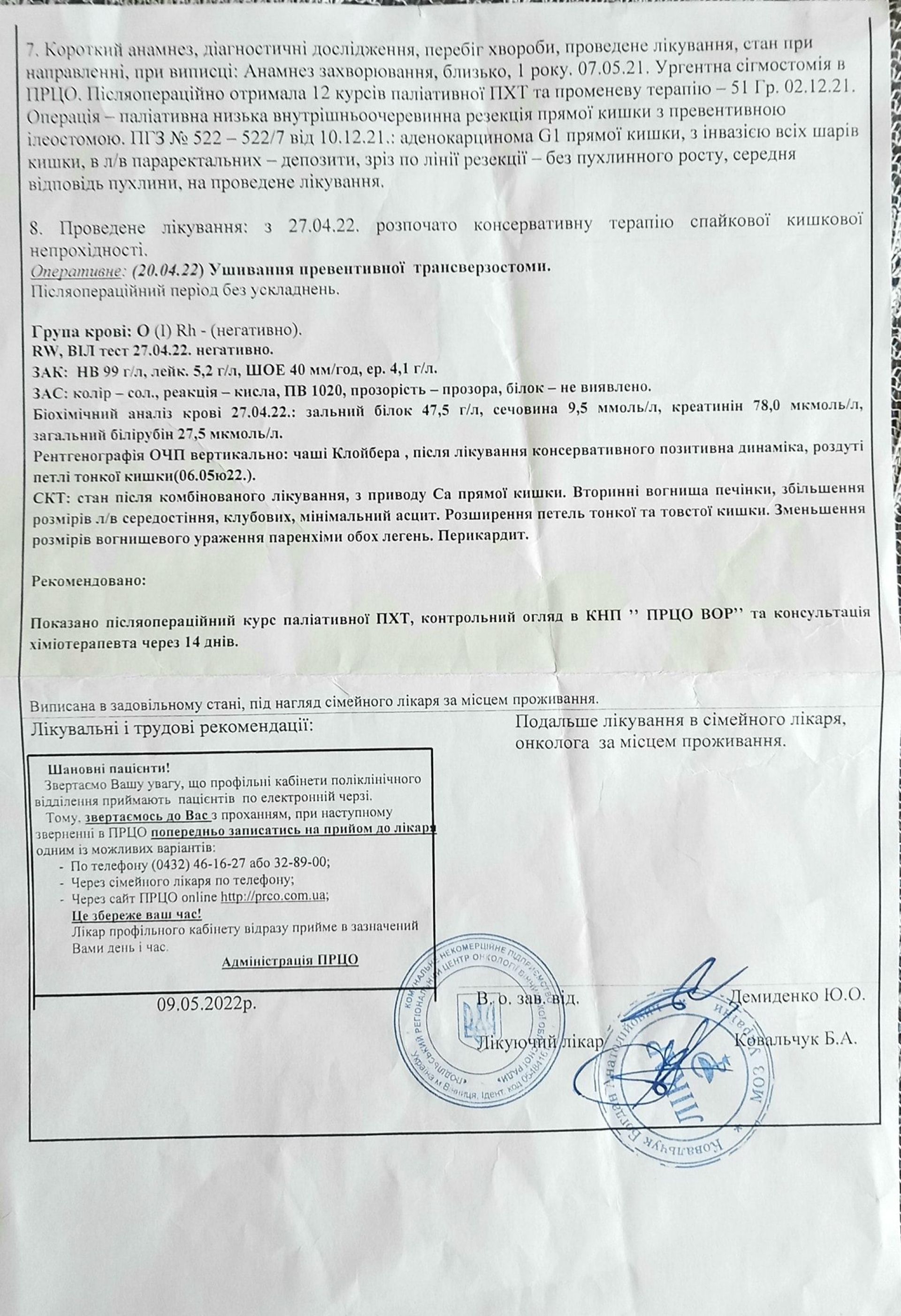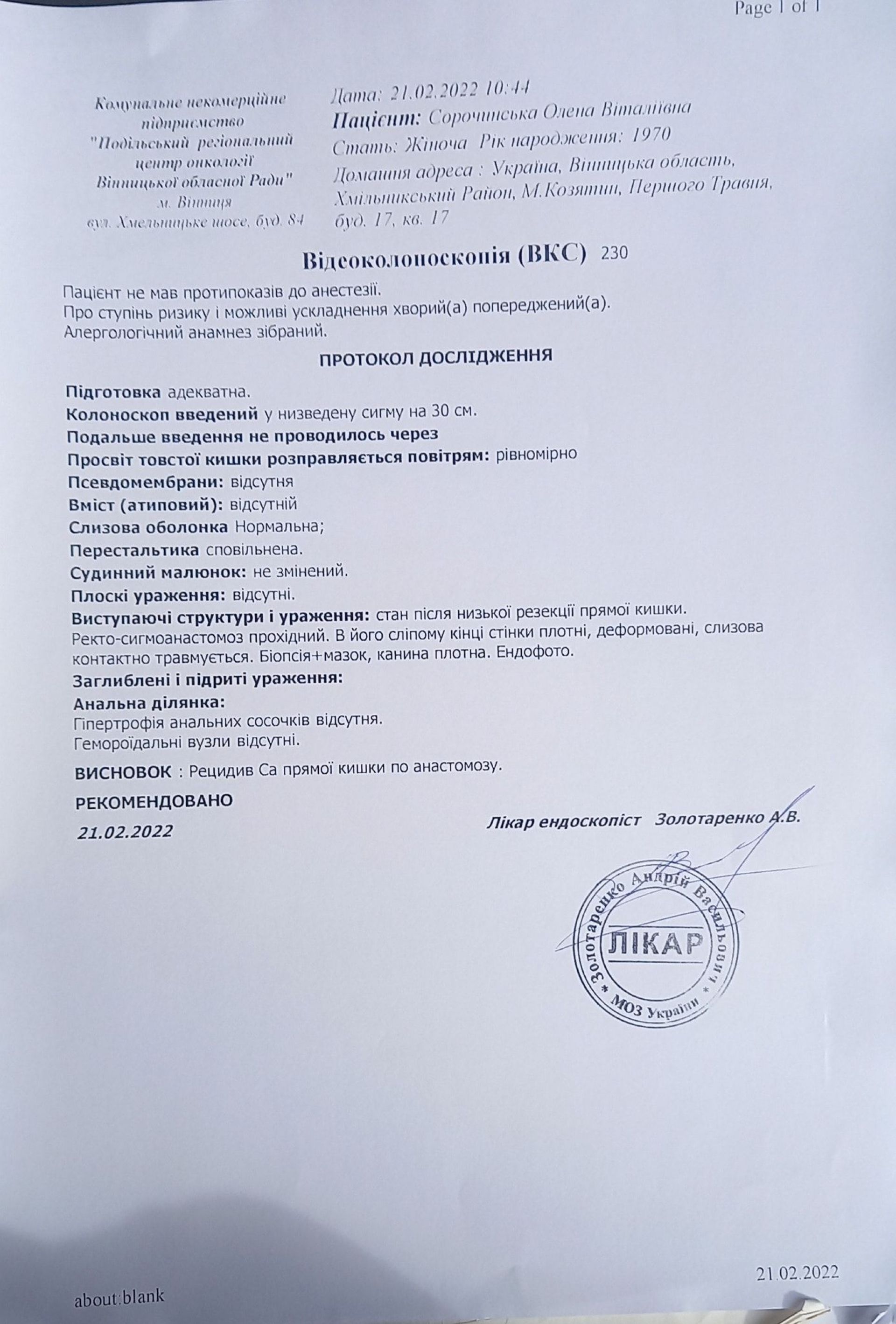— Любі друзі, допоможіть врятувати життя нашої мами! Моїй мамі Сорочинській Олені Віталіївні, 1970 р.н поставили діагноз РАК ПРЯМОЇ КИШКИ 4 стадія, з метастазами в легені та печінку. Ми лікуємось з 28.02.2021 року , вже було 3 операції які мама перенесла дуже важко, також проходили курси хіміотерапії та променевої терапії але і це не допомогло, — пише у ФБ донька Олени Тина Бойко
