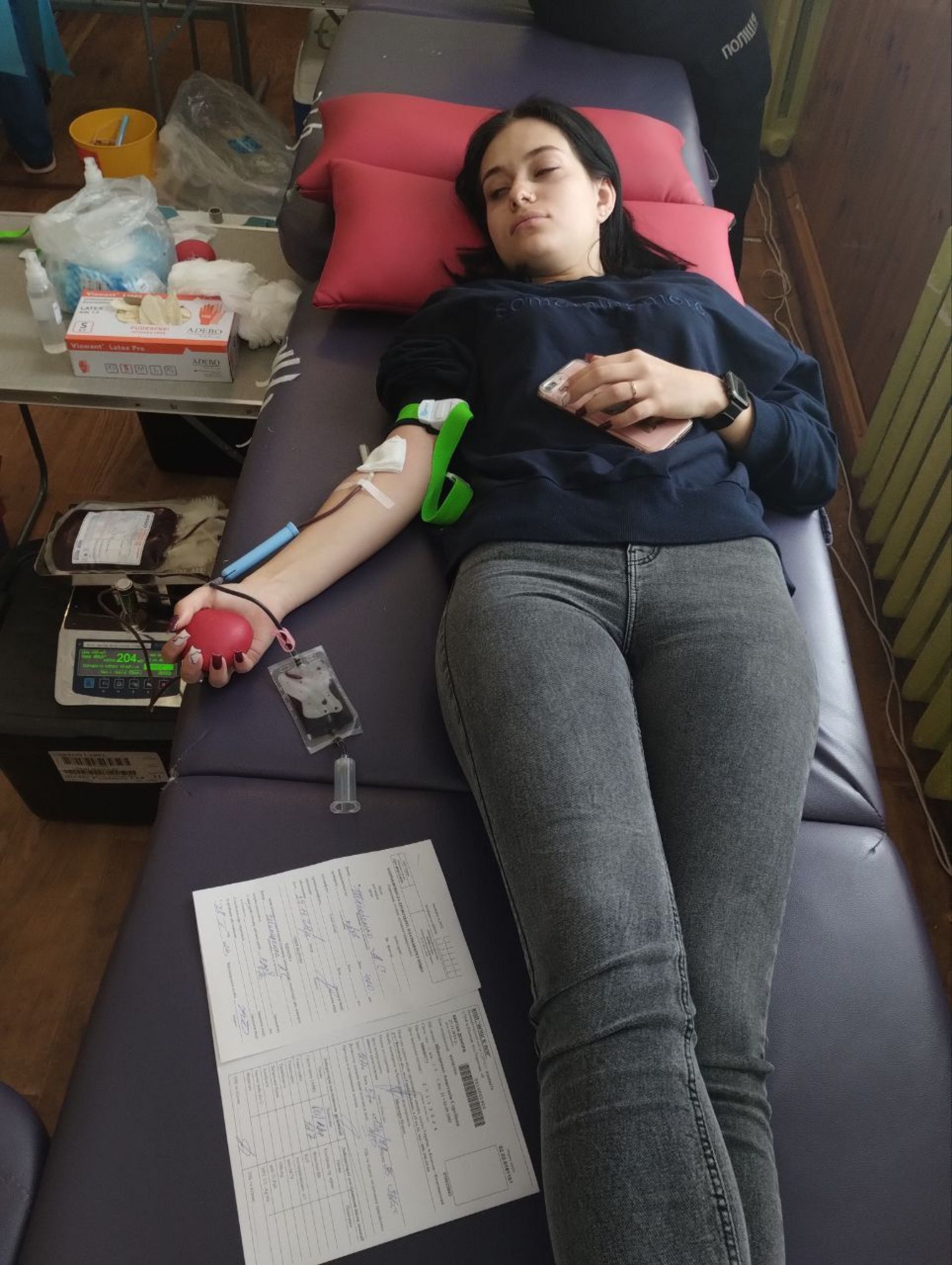 Не будемо зупинятися на всіх правилах перед і після здачі крові донором. Розповімо лишень, що, за словами медсестер, у них набирають загалом 470 мілілітрів крові — 450 плюс ще 20 — на обстеження.