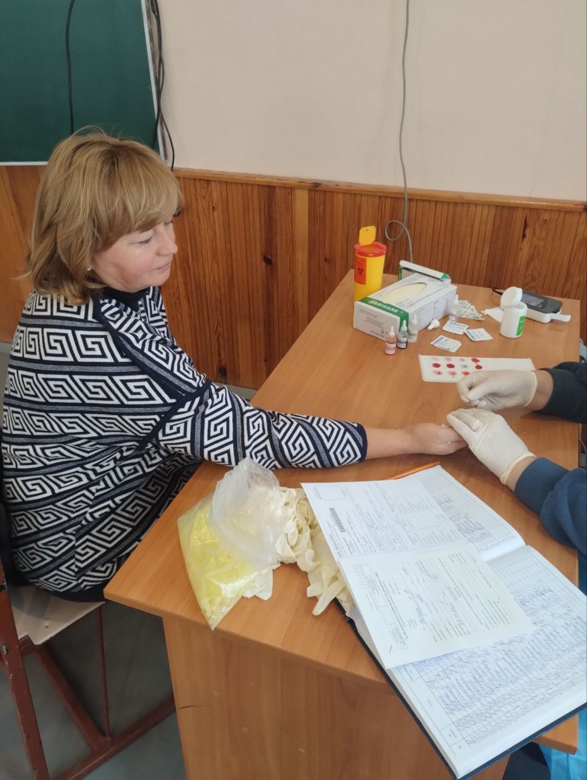 Після оформлення документів кандидатів у донори направляли у лабораторію для попередніх аналізів. Там проводили лабораторне обстеження — визначали групу крові, резус-фактор та гемоглобін.