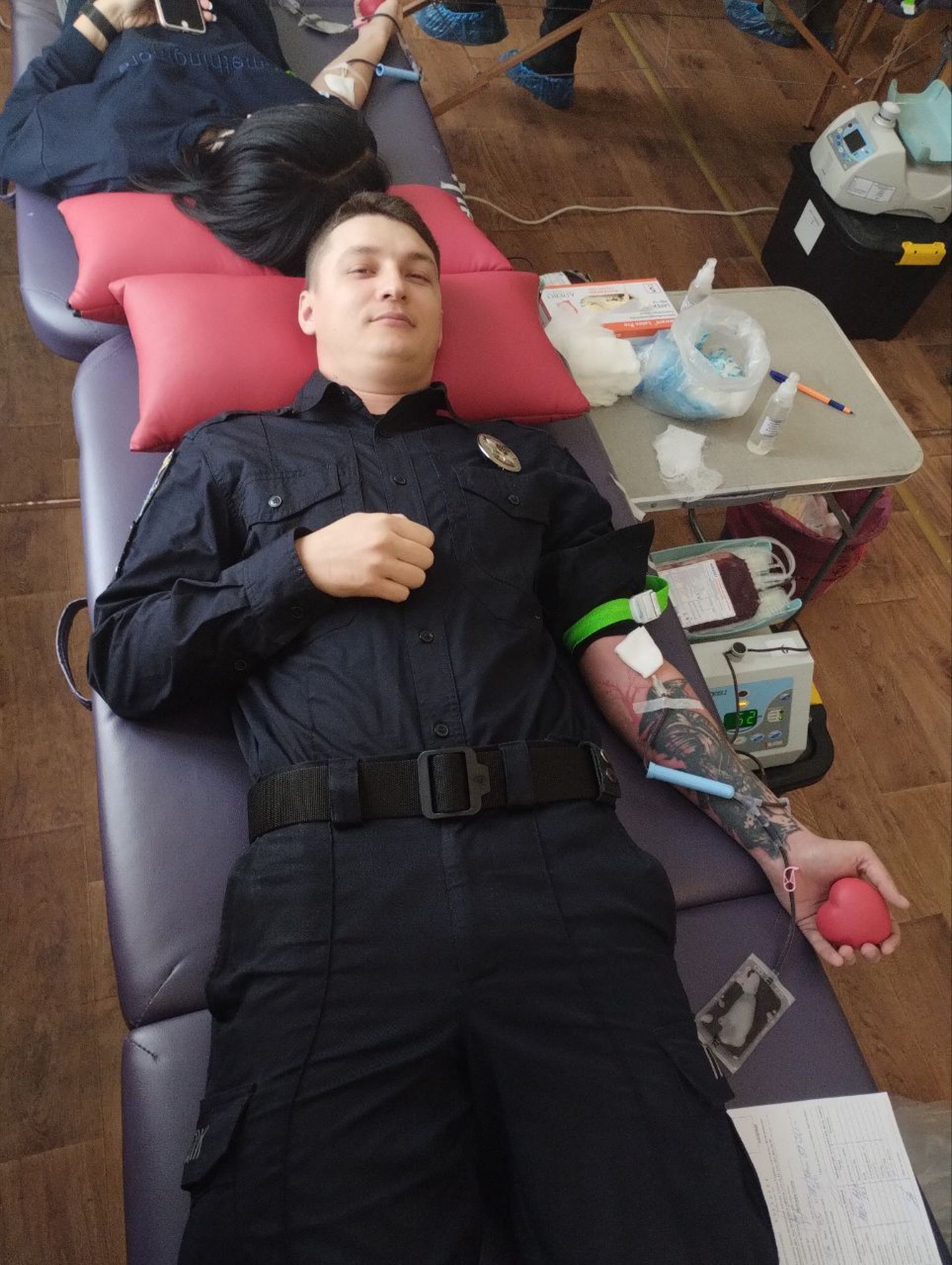 Поспікувалися і з поліцейськими. Їх тут було більше 10. Так, Анна Капкан, лейтенант патрульної поліції, розповіла, що до подібних акцій вона разом зі своїми колегами долучається регулярно. Намагаються допомогати військовослужбовцям будь-якими способами, і донорством теж. А от поліцейський Дмитро, з яким ми теж встигли поговорити, до 27 листопада донором ще не був. Сказав нам: «Відчув, що це потрібно зробити».