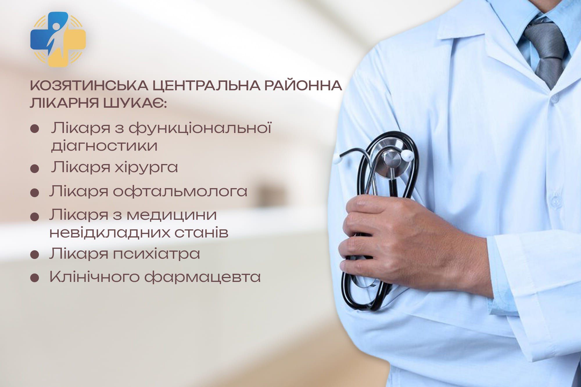 Козятинська ЦРЛ шукає хірурга, офтальмолога, психіатра. Перелік вільних вакансій