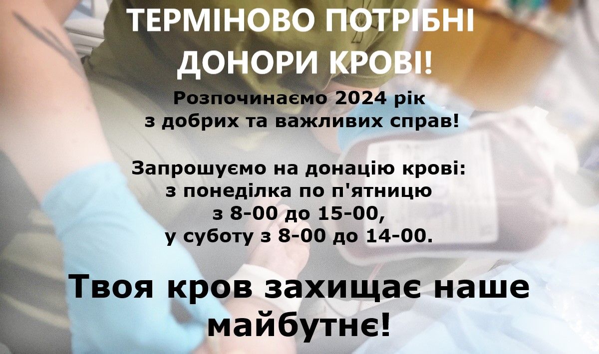 - Вінницький обласний центр служби крові терміново потребує донорів крові усіх груп.