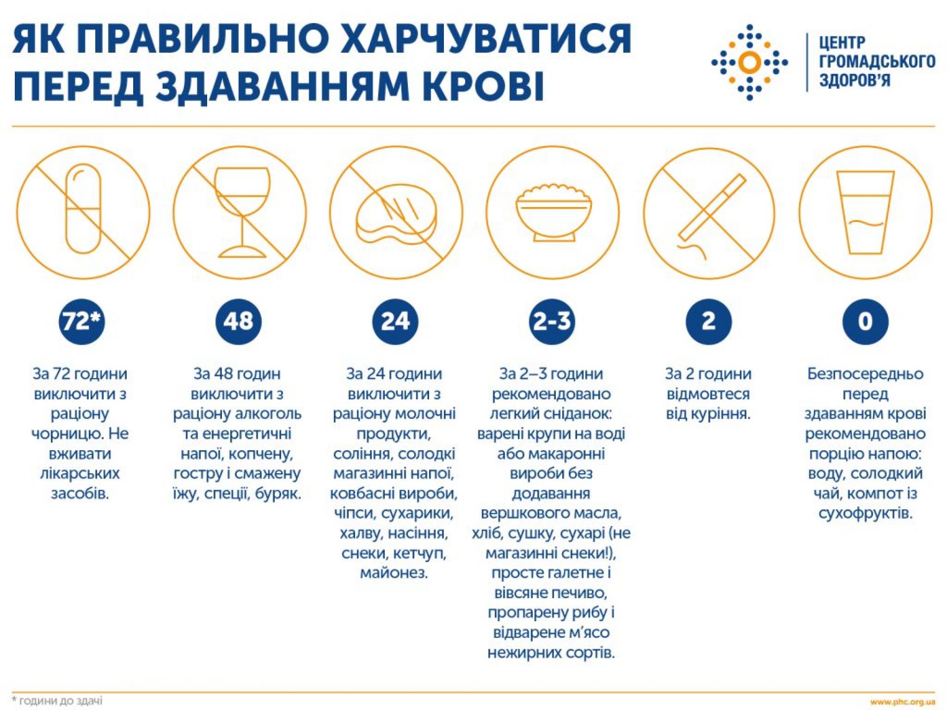 - Не вживайте алкоголь за 48 годин до здавання крові. Виключіть із раціону жирну, смажену, копчену, молочну їжу, соління.
