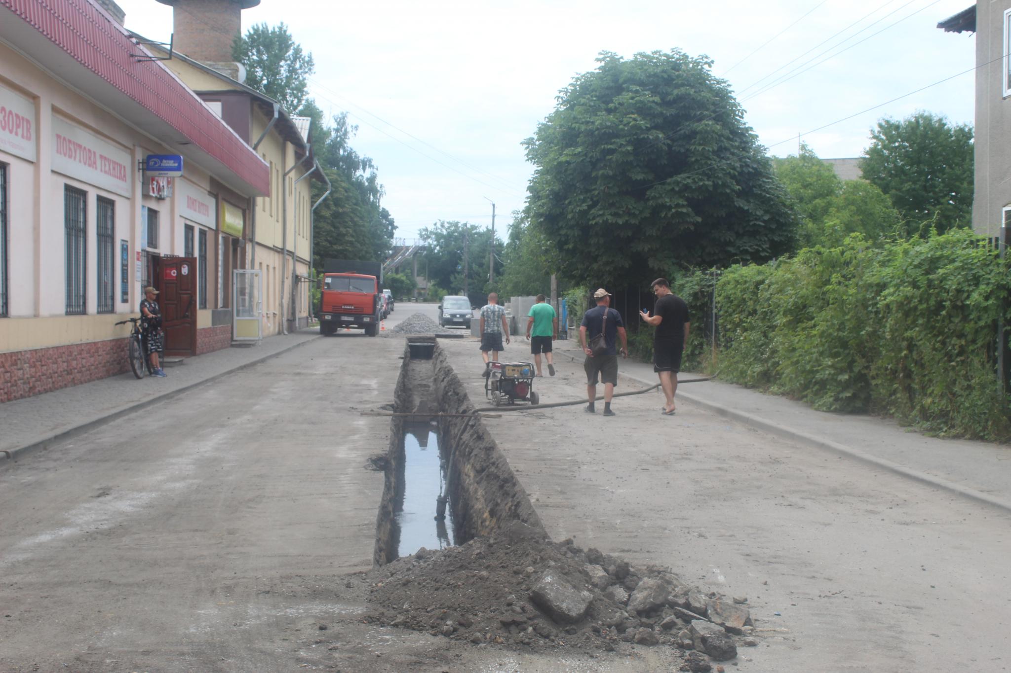 На вулиці Винниченка розпочали роботи з водовідведення. В самій нижній точці дороги спеціалісти з водовідведення зробили канал і відкачують з траншеї грунтові води. Зробили одне фото на замовлення.