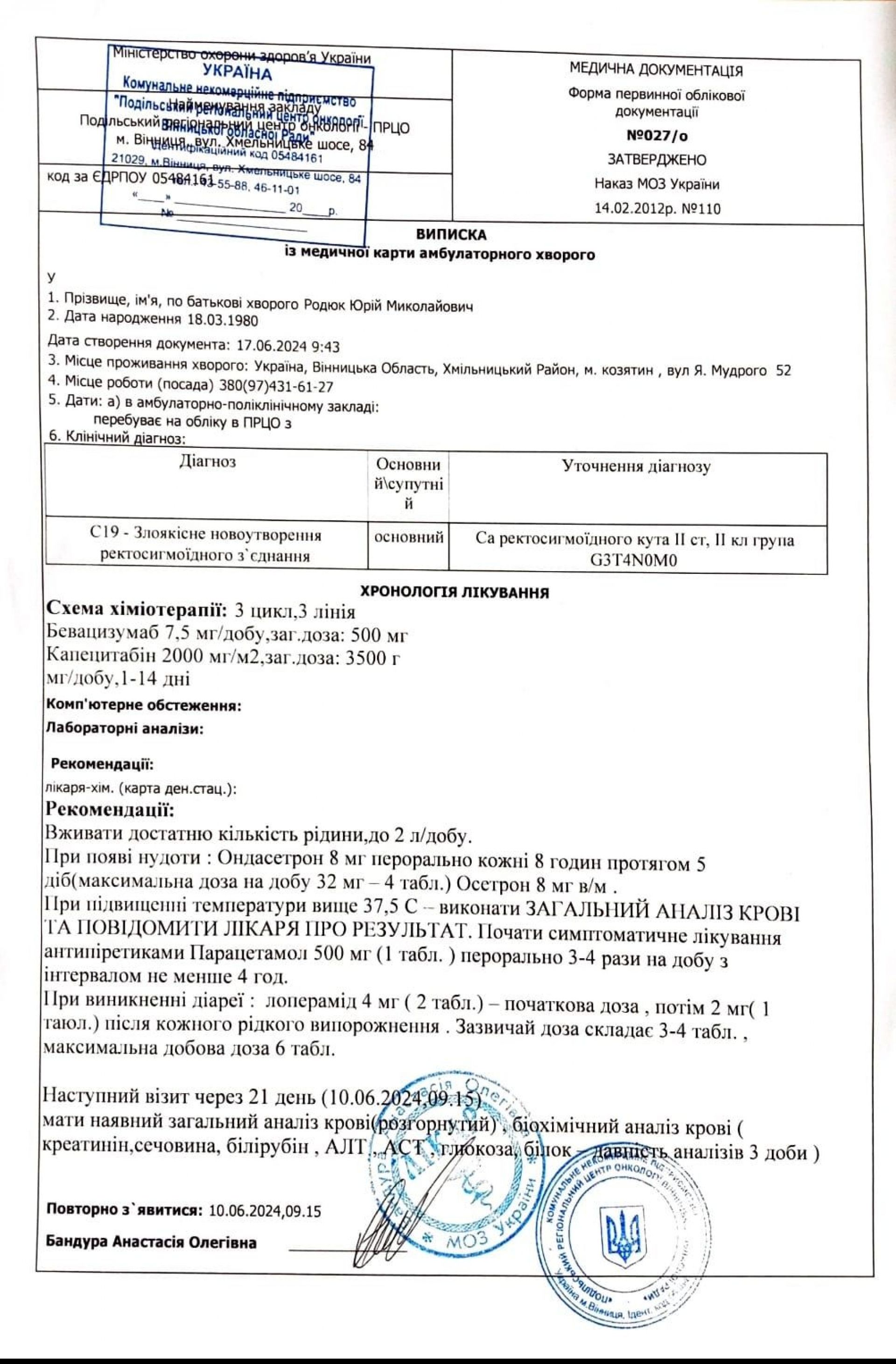 - Козятинчанин Юрій Родюк продовжує боротися я з аденокарциномою товстої кишки.