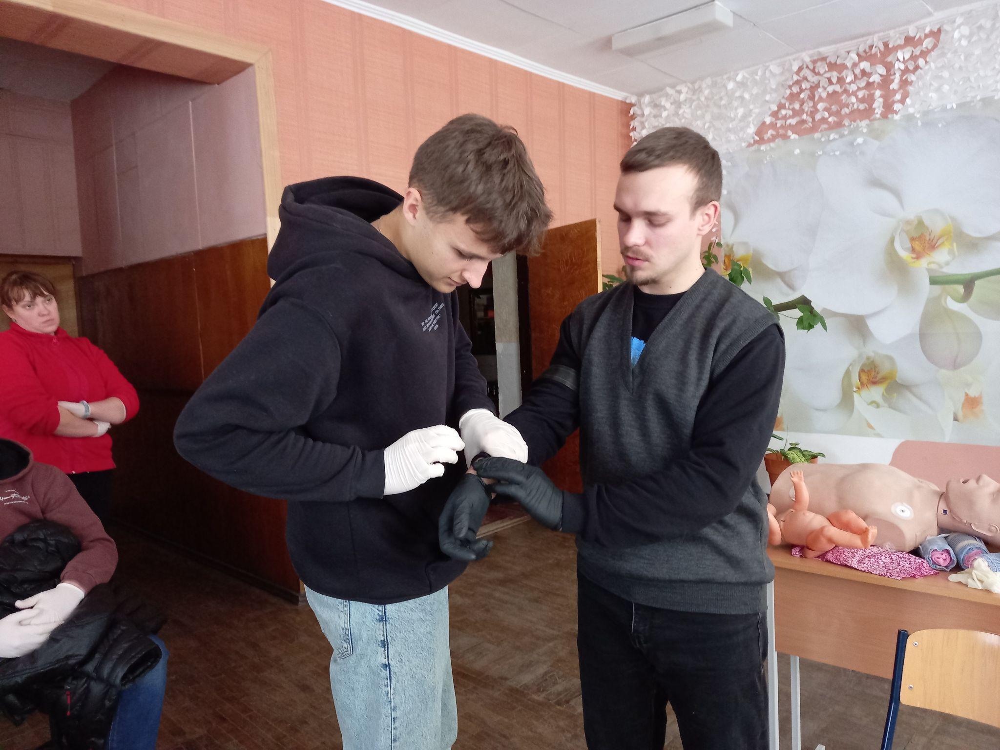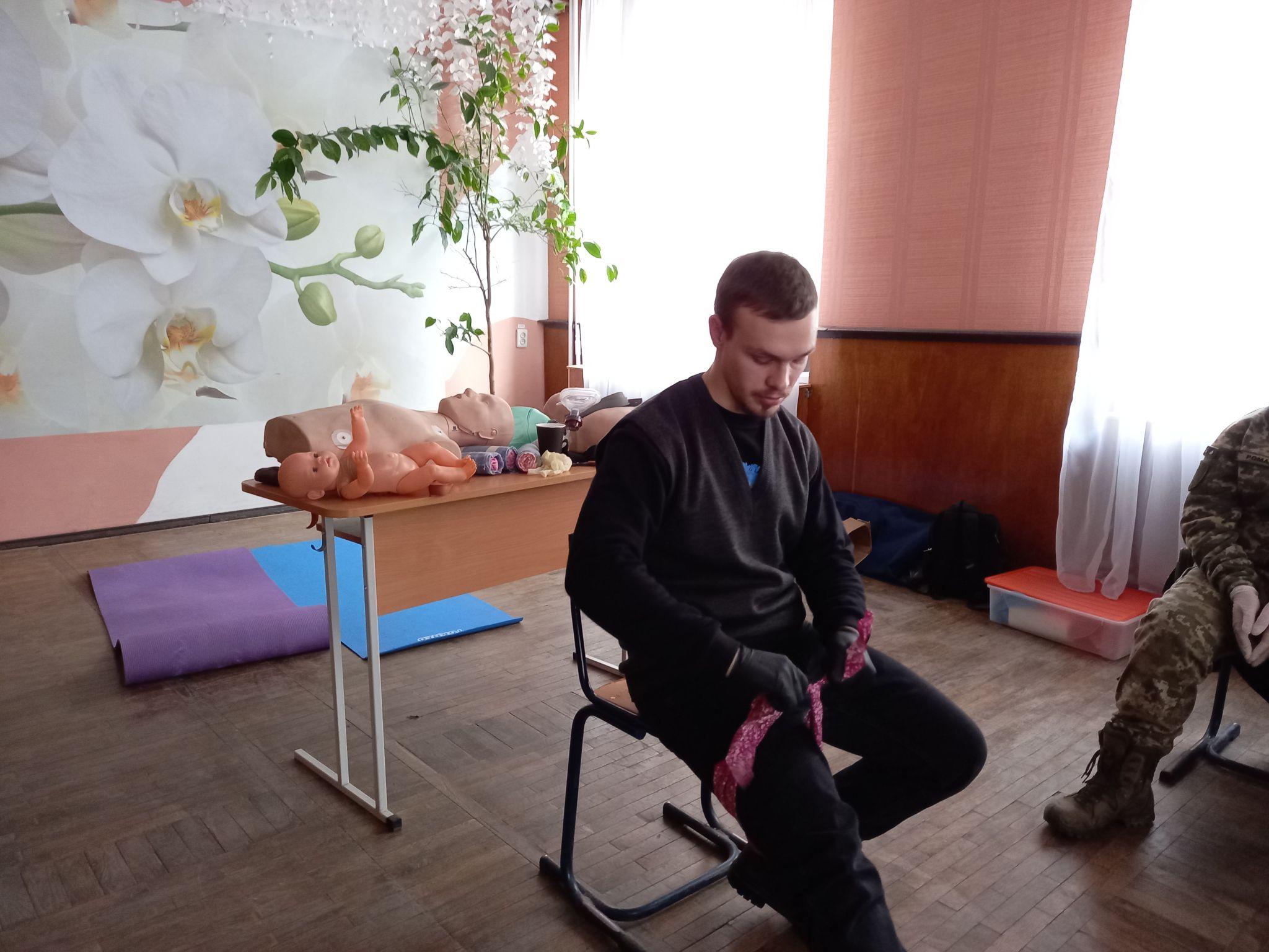 Наостанок учасникам тренінгу показали професійні засоби для зупинки кровотечі — турнікети закордонного та вітчизняного зразка. Дмитро продемонстрував, як їх правильно накладати, після чого учасники спробували це роботи самостійно. Відсутність пульсу — індикатор правильності використання турнікету.