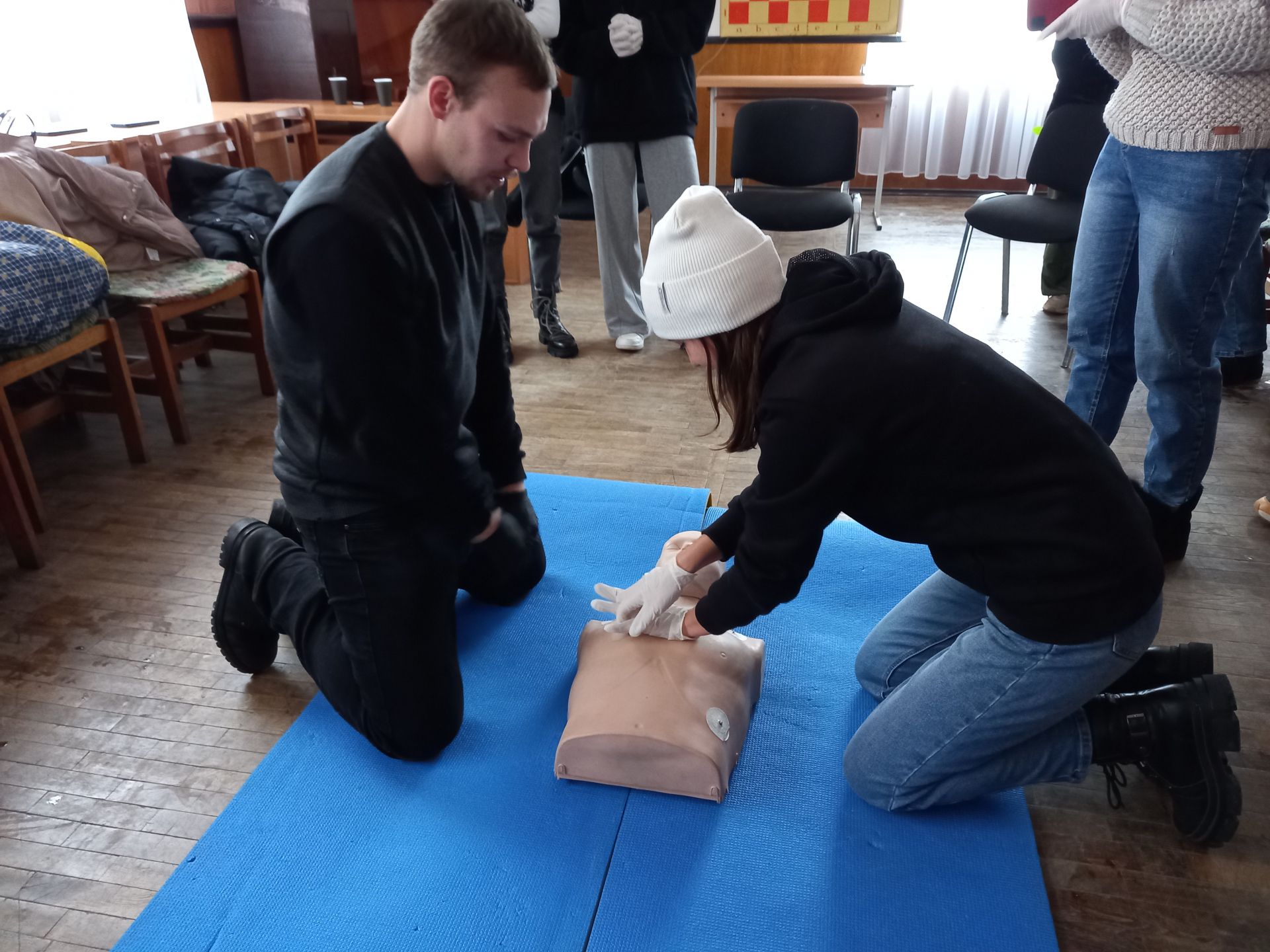 — Потрібно робити штучну вентиляцію легенів, — каже Дмитро, коли Ірина підходить до нього. — Будете готові, скажете мені, щоб я почав рахувати.