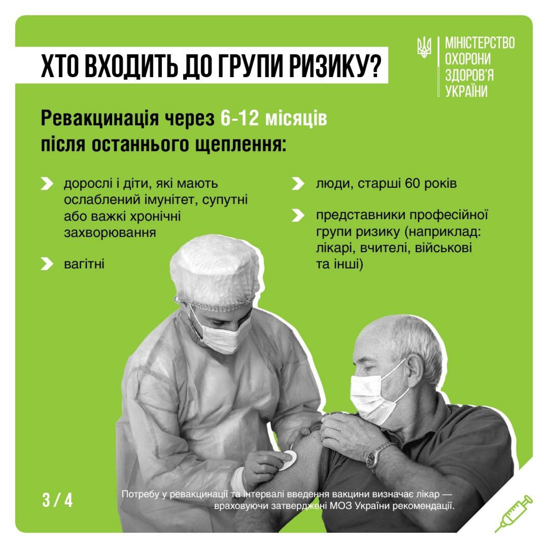 Що стосується ревакцинації, то її рекомендують робити через 6-12 місяців не усім, а людям із груп ризику: