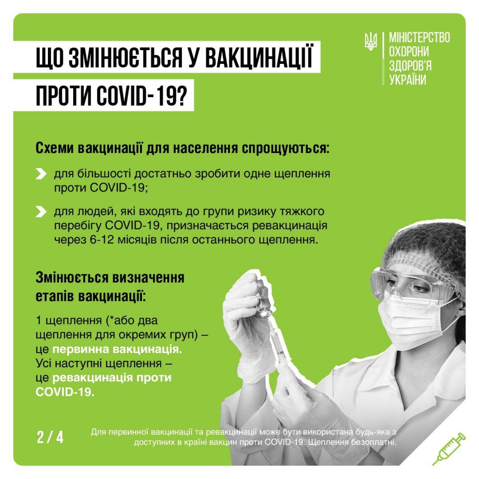 - Там зазначають — схеми вакцинації для населення спрощуються: для більшості людей достатньо зробити одне щеплення проти СОVID-19.