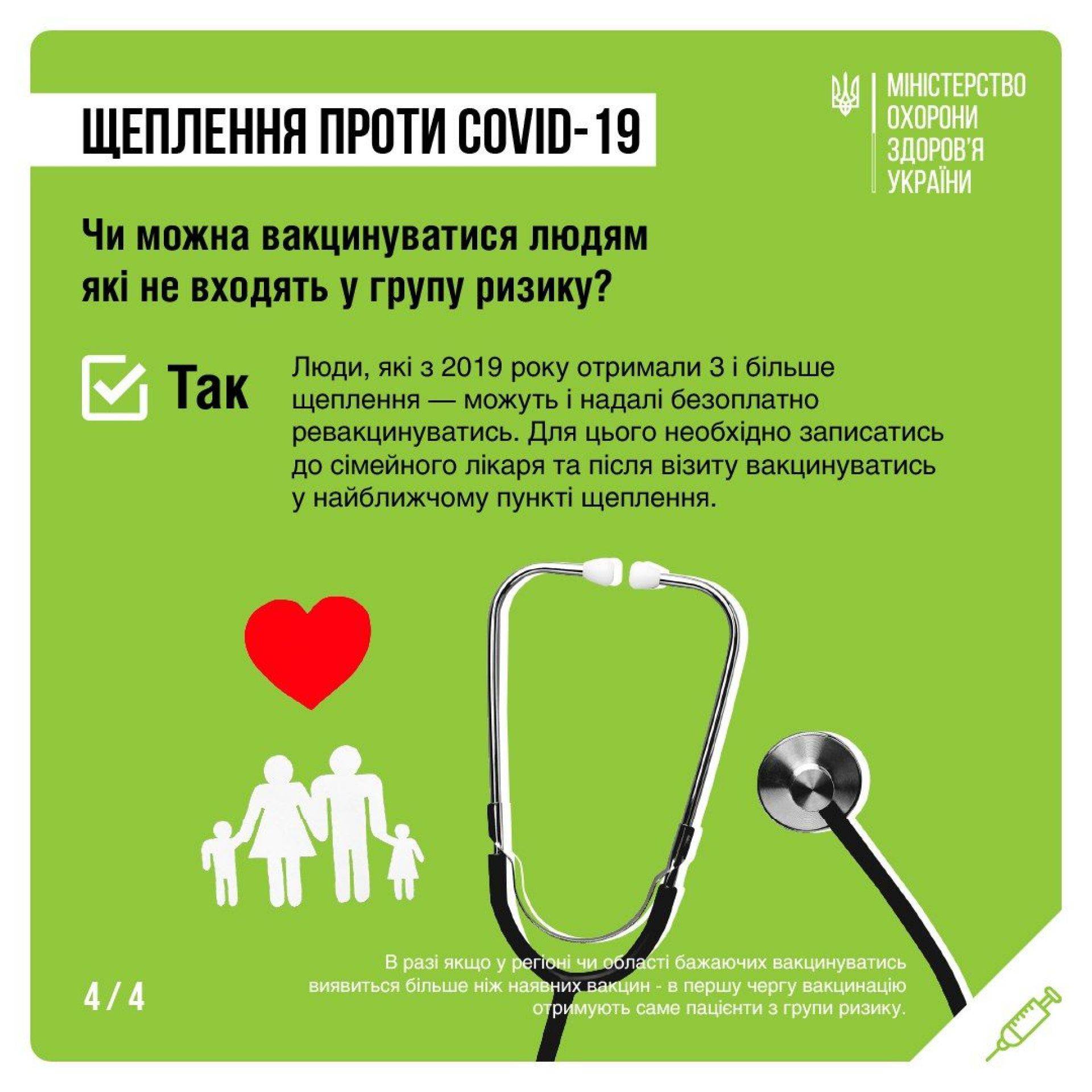 — Люди, які в попередні роки пройшли базовий курс щеплення (*два або три щеплення, в залежності від вакцини) та зробили 4 або 5 за рахунком бустерне щеплення минулого року, — можуть і надалі безоплатно ревакцинуватись, — додають у МОЗі