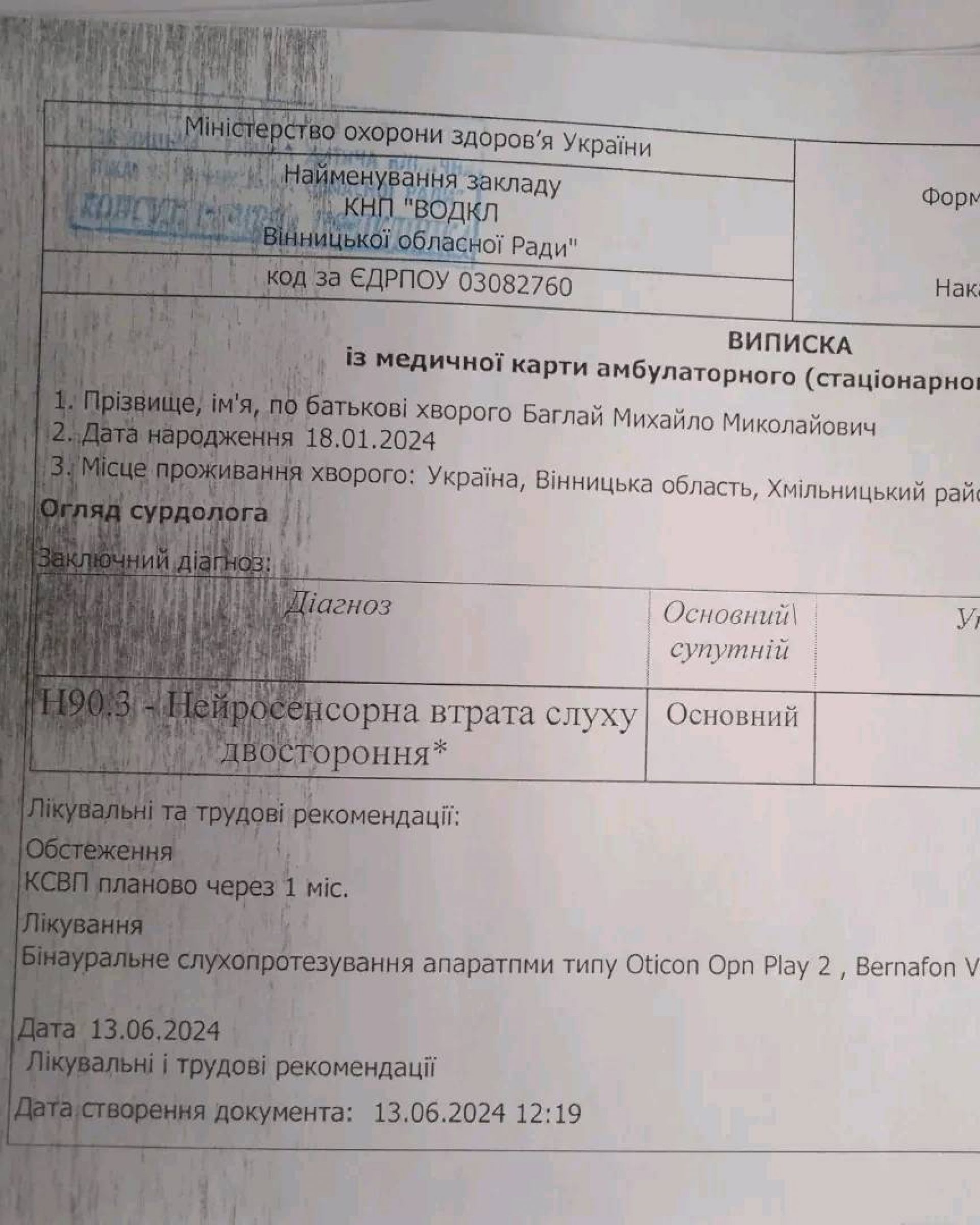 - Йому поставили діагноз — двостороння нейросенсорна приглуховатість.
