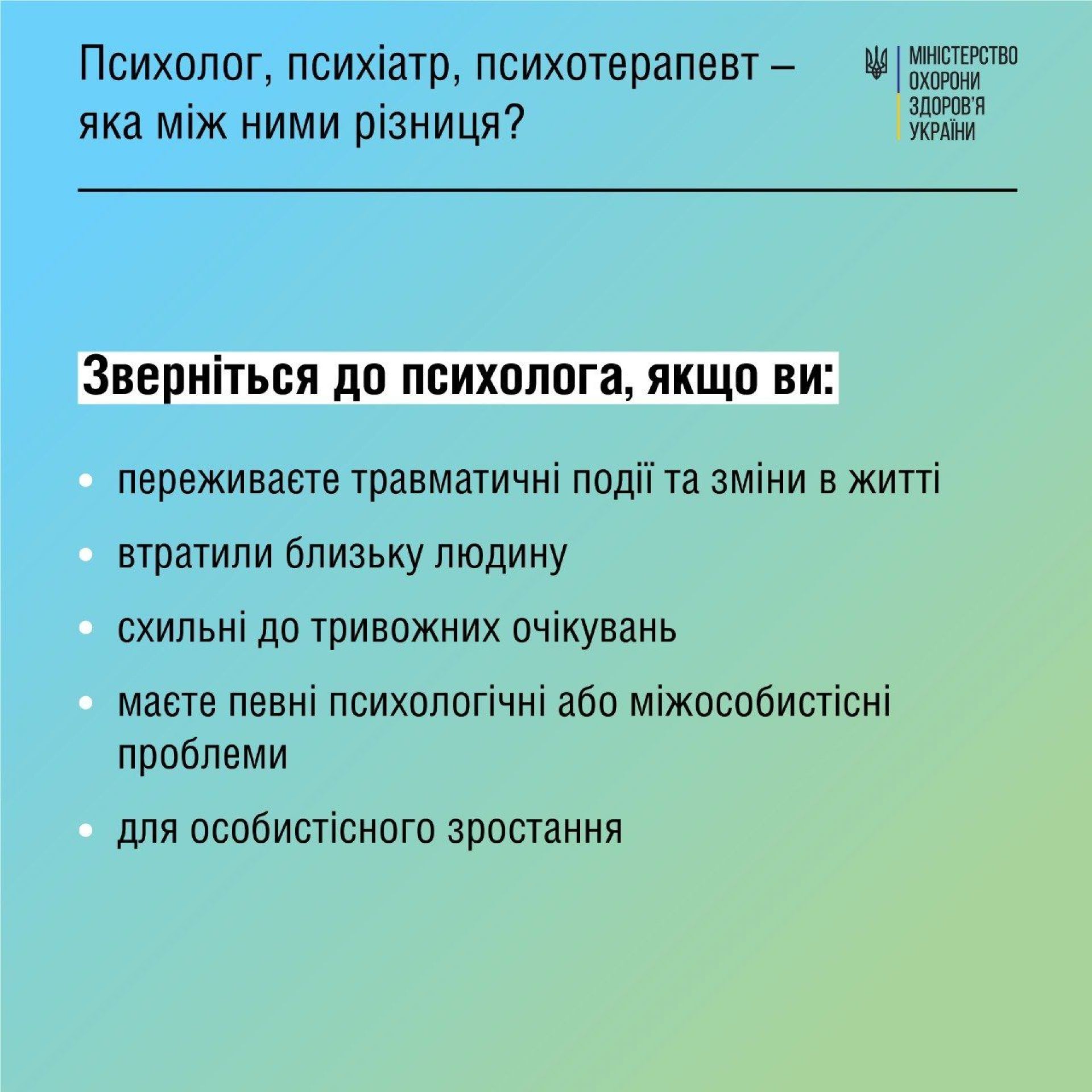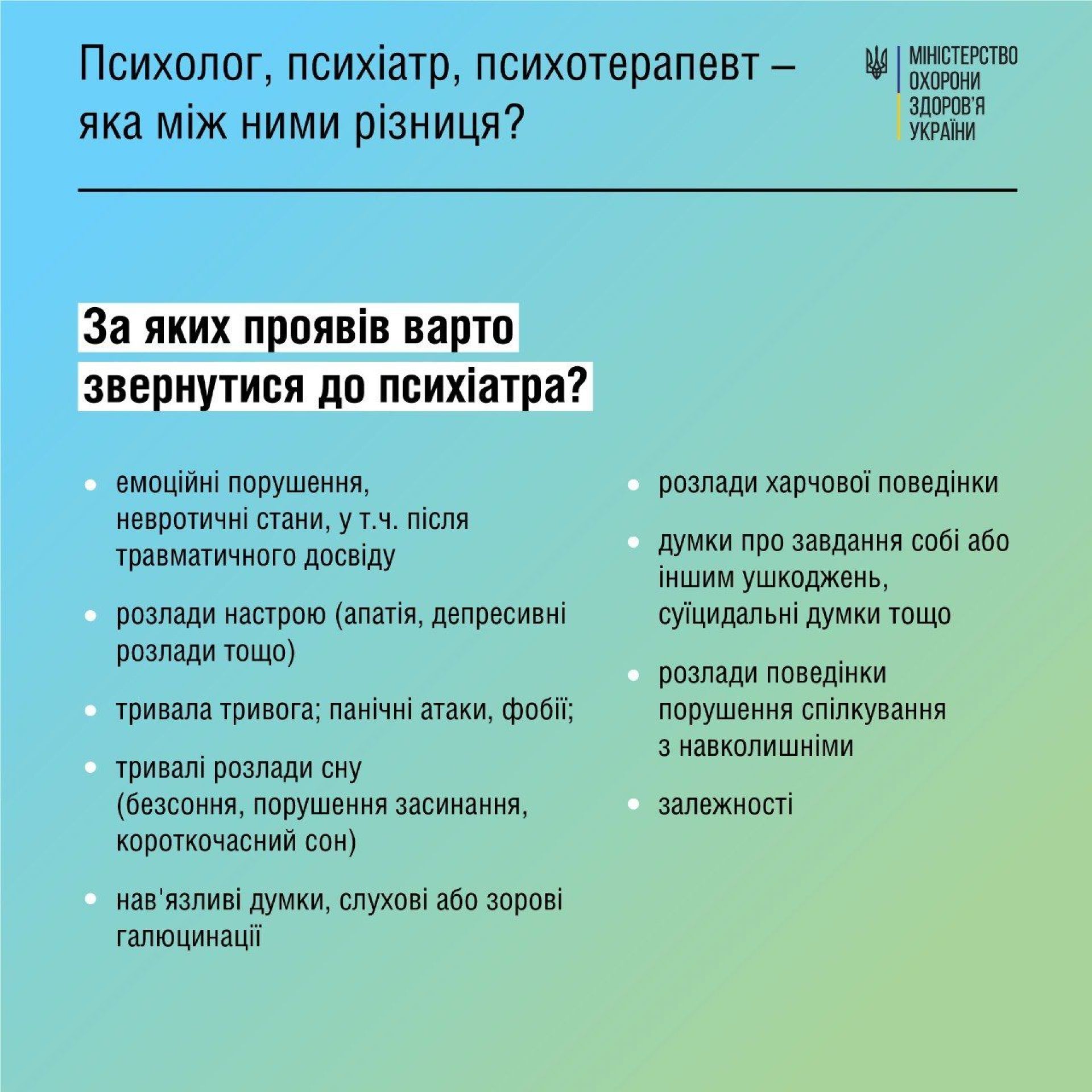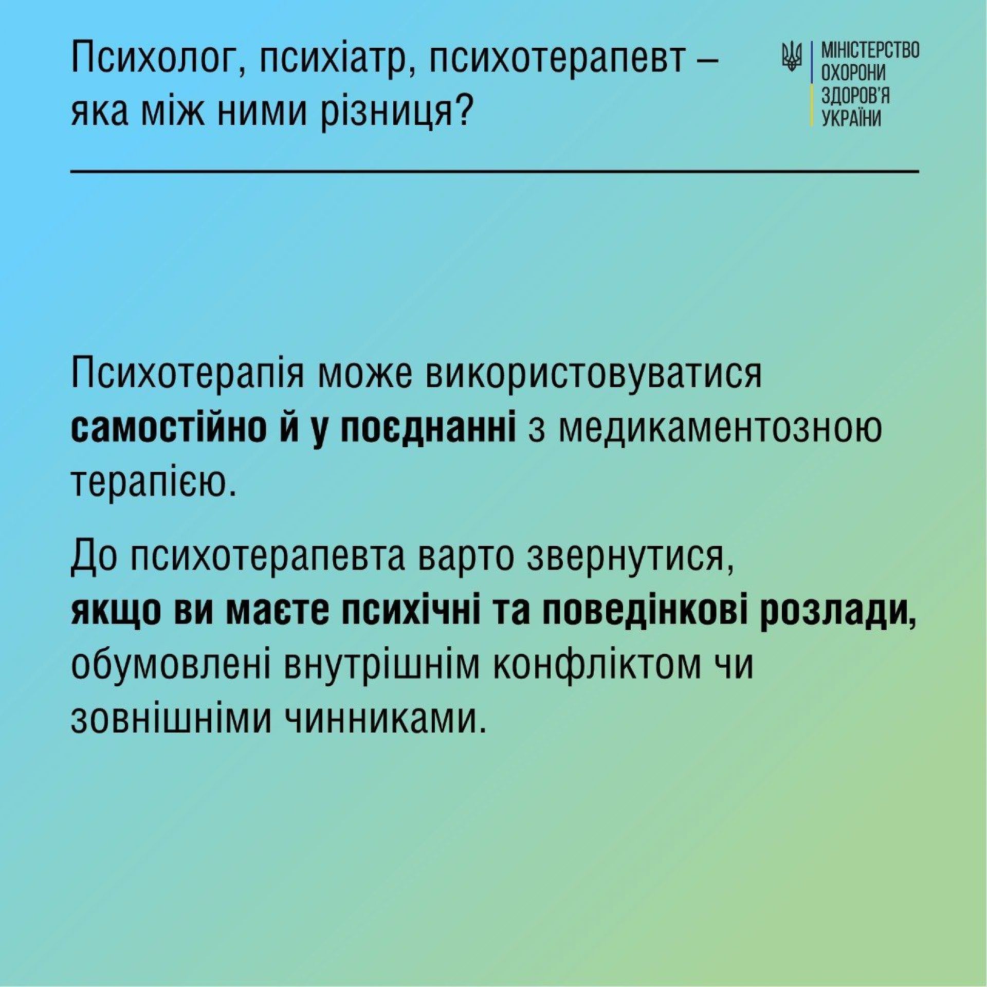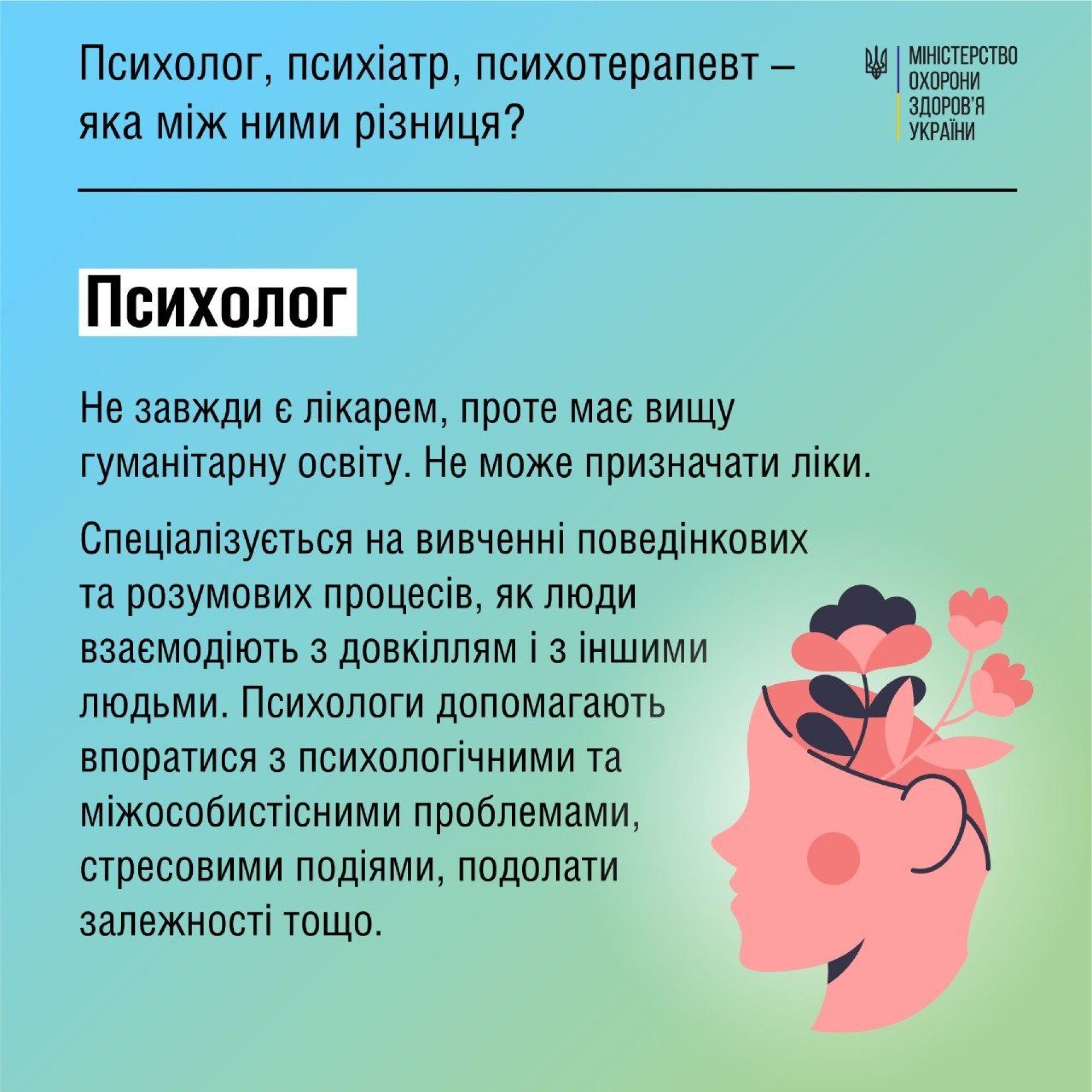 Проте між освітою, методами і способами взаємодії цих спеціалістів із тими, хто до них звертається, — велика різниця, зазначають у МОЗ.