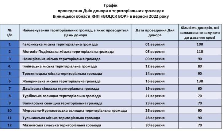 У громадах Вінниччини відбудуться «Дні донора». Графік