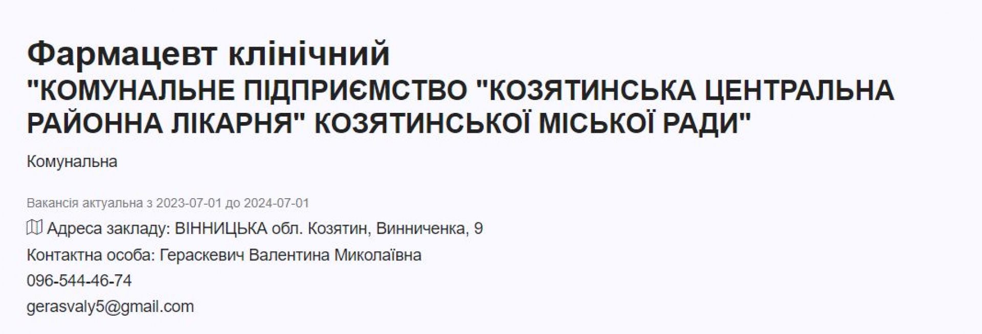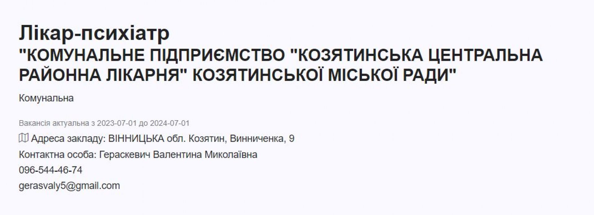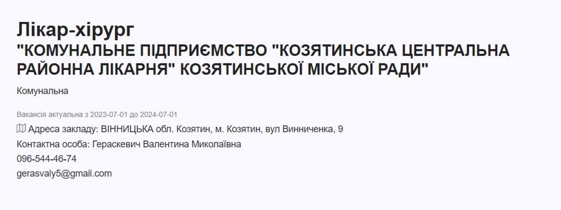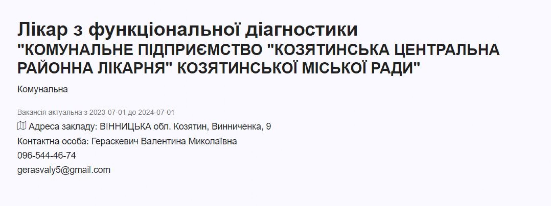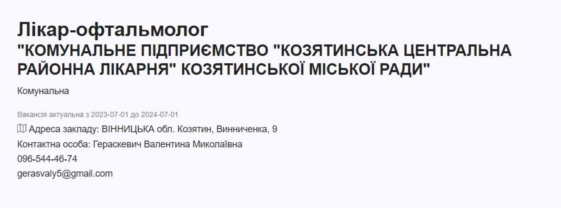 - У Вінницькій області є 25 вакансій для медичних працівників. Сім з них пропонують у Козятині. Розповідаємо, де переглянути пропозиції.