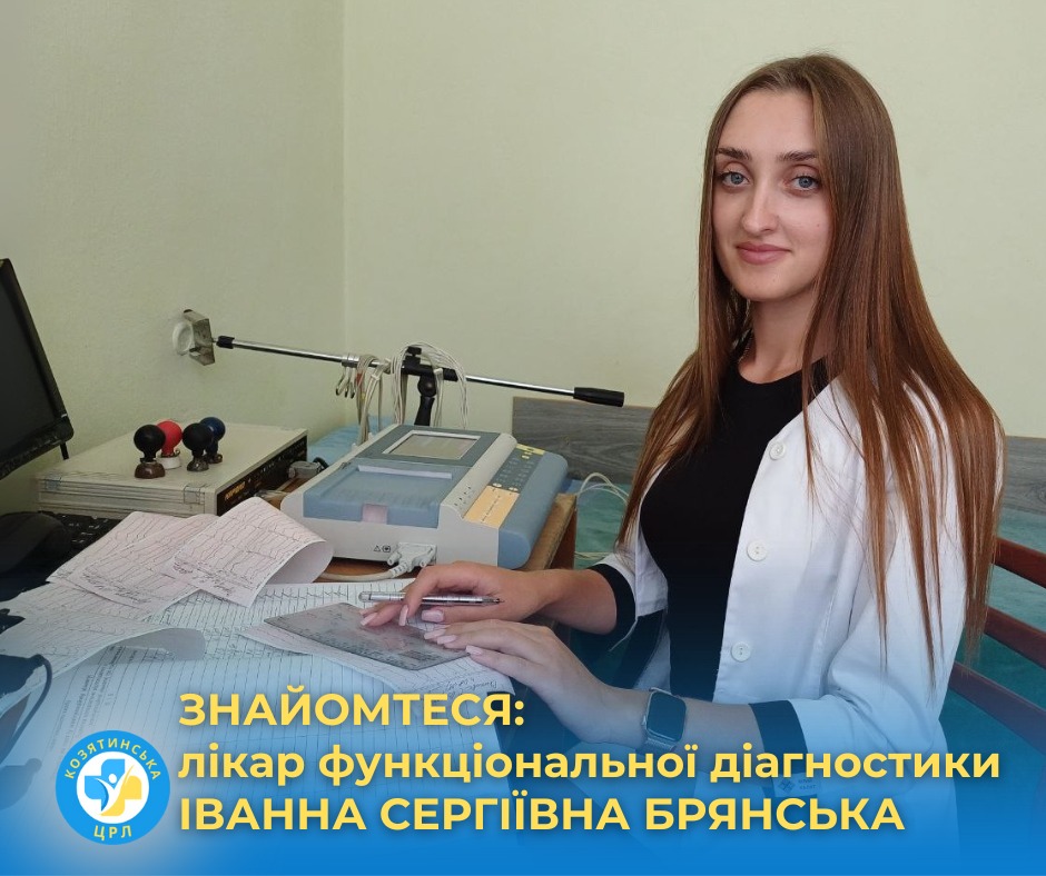 З 1 серпня до медичної спільноти нашої лікарні долучилася ще одна молодa, талановита й надзвичайно вмотивована фахівчиня — Іванна Сергіївна Брянська, лікарка-стажерка за спеціальністю функціональна діагностика.