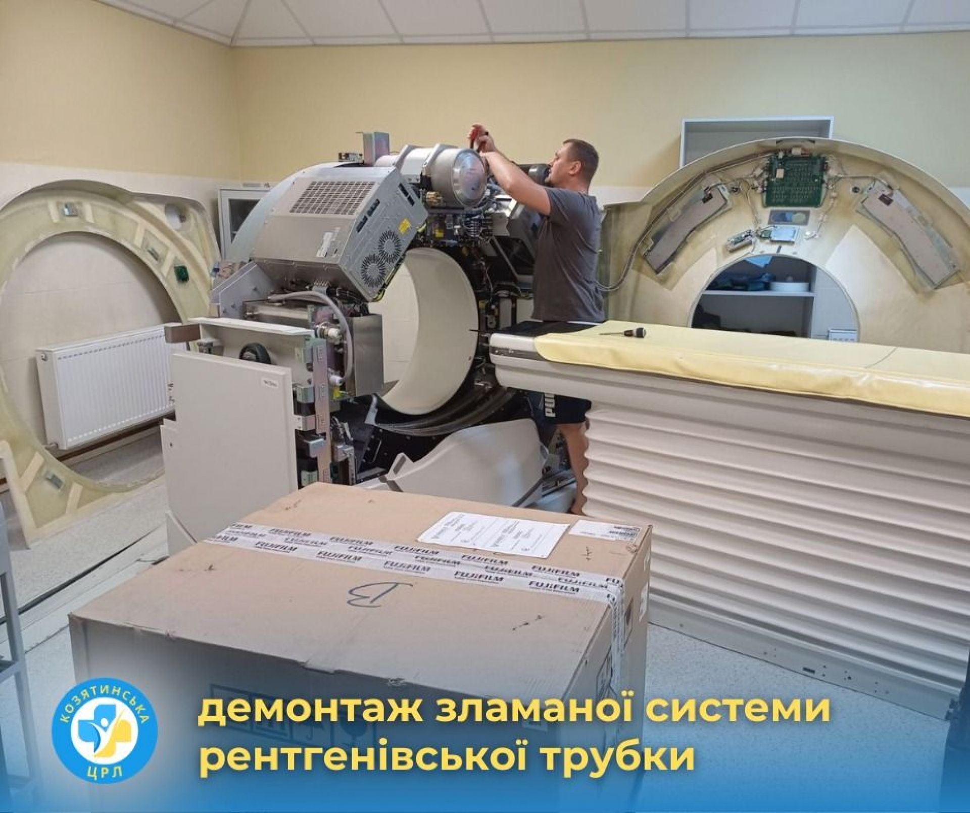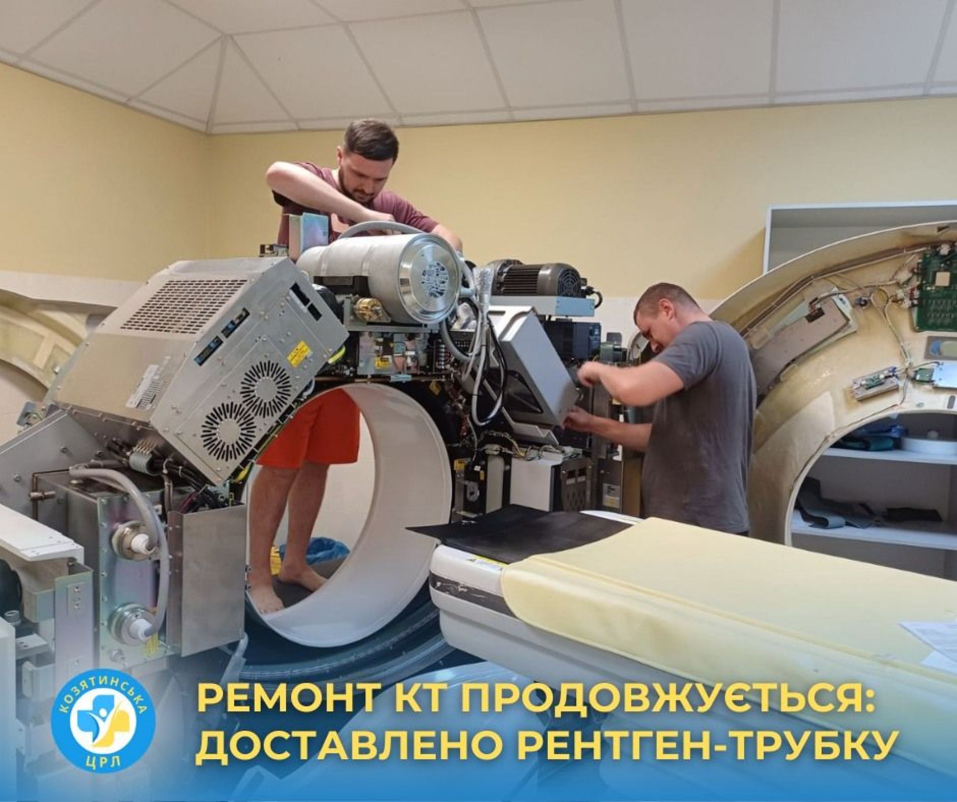Закуплену рентгенівську трубку до Козятинської ЦРЛ доставили і відучора столичні біоінженери розпочали процес встановлення та наладки «серця КТ-апарату». Рентгенологічне обладнання високоточної діагностики потребує уважного і якісного технічного супроводу при налагодженні. І цей етап ремонту вже розпочався».