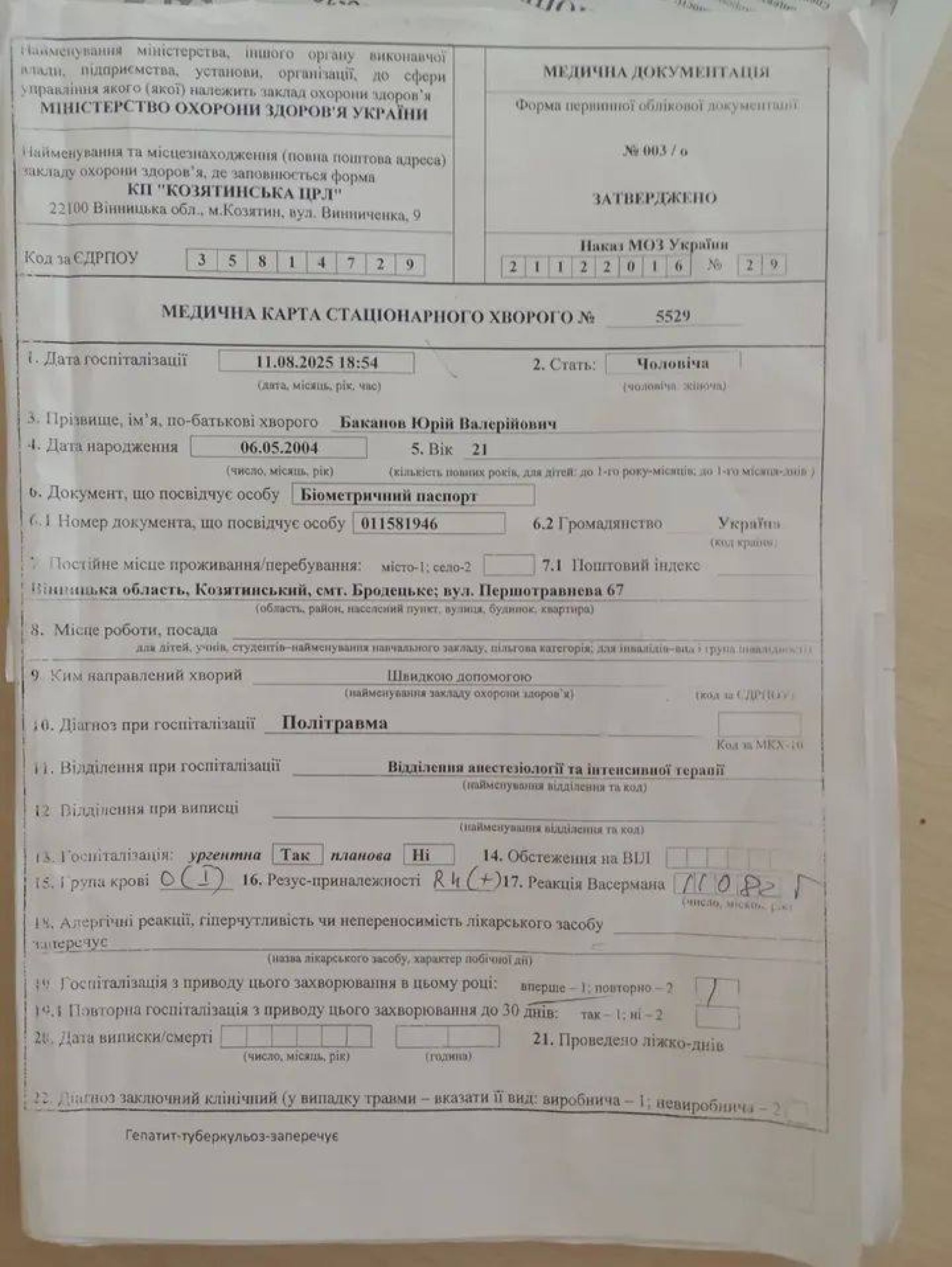 - Ще один пасажир розбитої вщент автівки — і досі у лікарні. Він також з Бродецького. Це 21-річний Юрій Баконов.