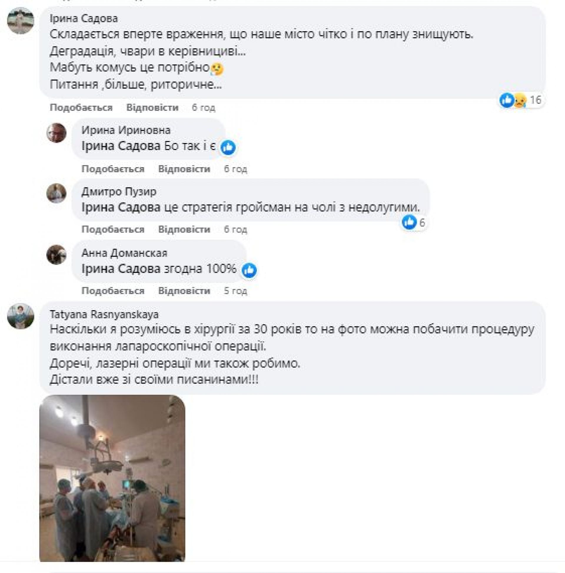 Ця тема неабияк зачепила козятинчан і вони почали жваво обговорювати її. Мовляв, не з нашим щастям мати таку розкіш у лікарні, в нас тільки все закривають і нічого нового не відкривають тощо.