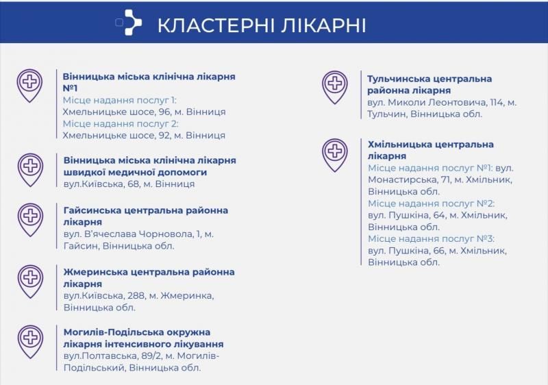 До спроможної мережі Вінницького госпітального округу, крім закладів первинної медичної допомоги та екстреної медичної допомоги, увійшли 33 заклади спеціалізованої медичної допомоги, з них з різним статусом.