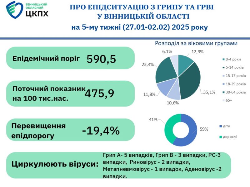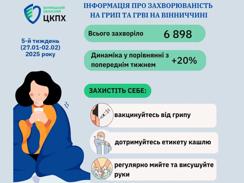 - Три тижні у Вінницькій області показали зростання кількість хворих на грип типів A та B на 40%.