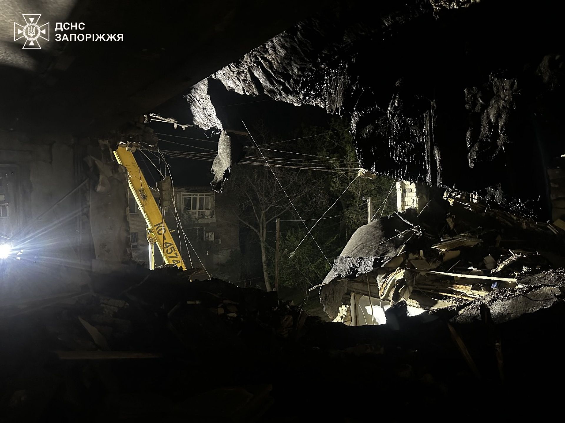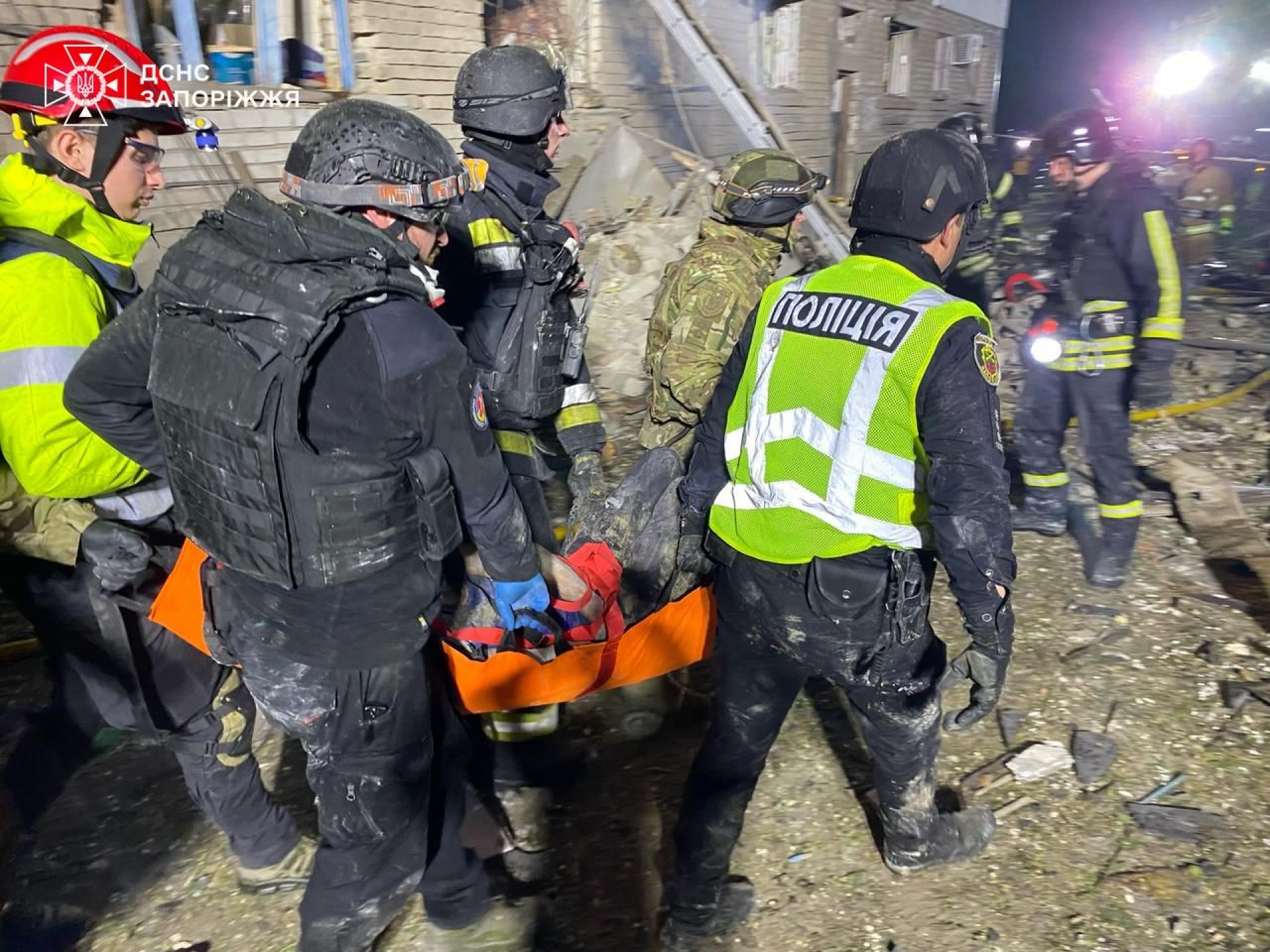 Ситуація у Запоріжжі від ДСНС: «Станом на 07.00 2 травня кількість травмованих зросла до 29 громадян. Рятувальники деблокували з-під завалів зруйнованої конструкції будинку три людини. Попередня інформація про загибель однієї особи спростувалася: чоловік прийшов до тями. Кількість постраждалих уточнюється. Психологи ДСНС надали допомогу 22 людям, з них двоє дітей».