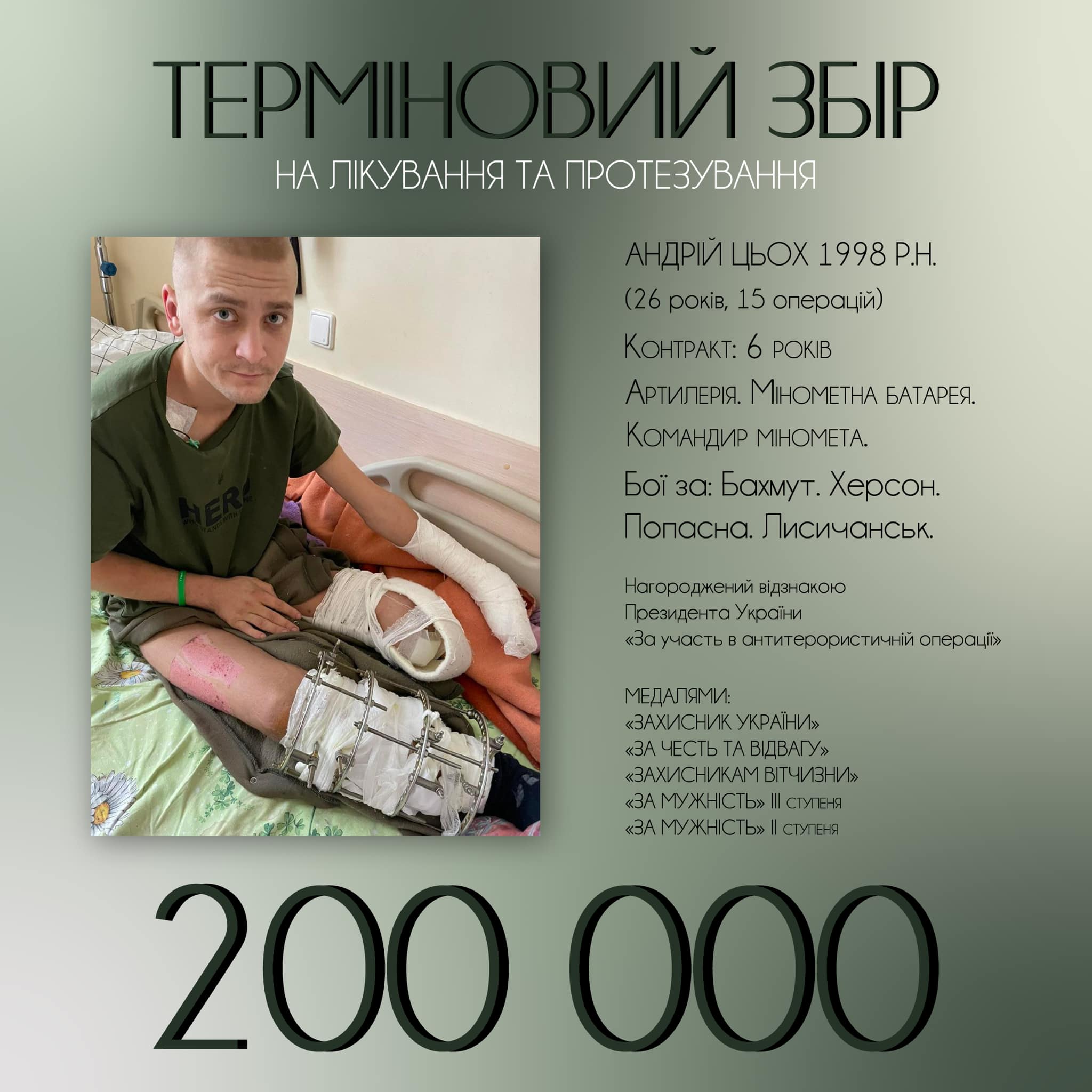 — Тому ми долучаємось до збору 200 000 грн, щоб допомогти Андрію. Ваша допомога може зробити справжнє диво - повернути нашому герою можливість ходити та жити повноцінним життям.