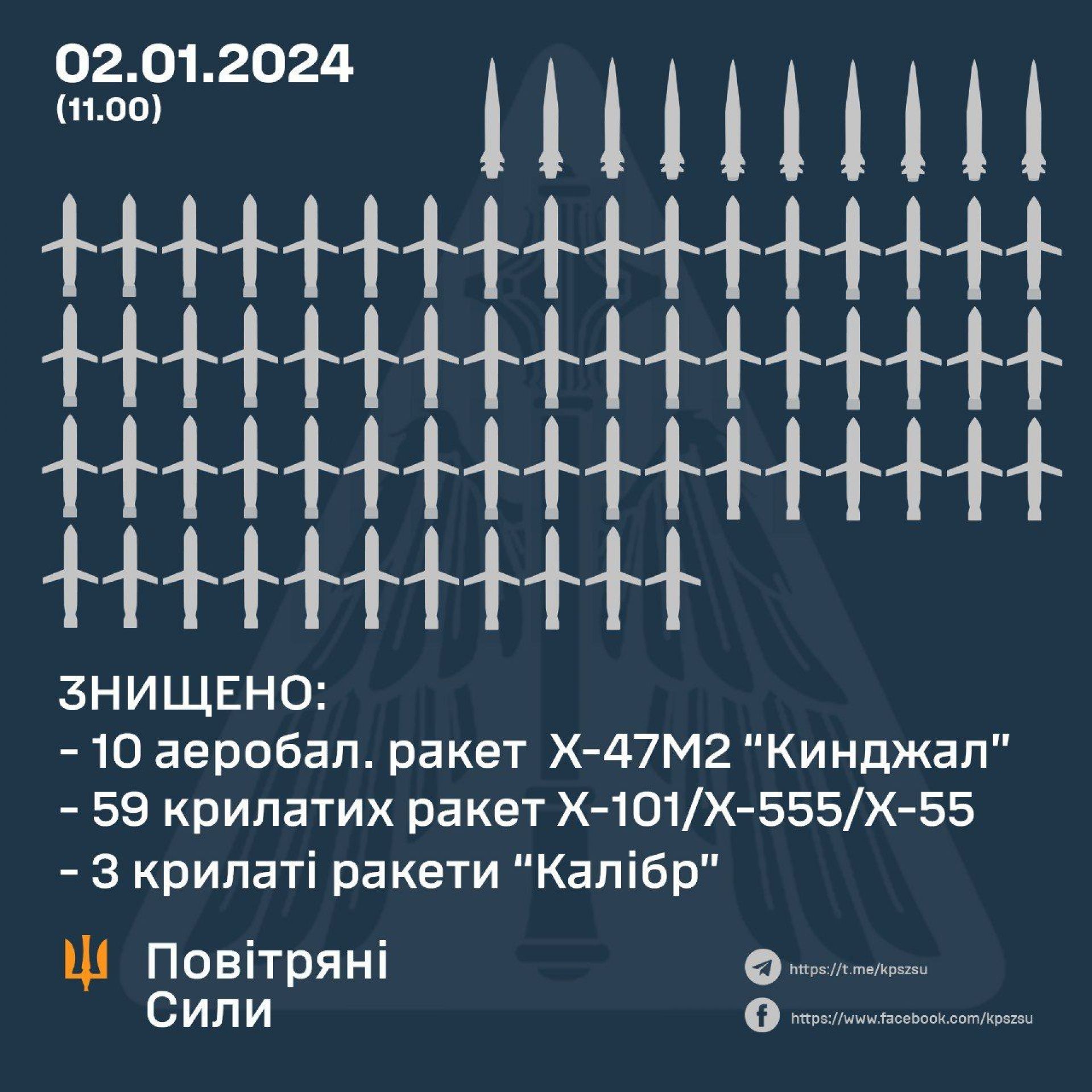 У ніч на 2 січня 2024 року ворог повторив масовану атаку засобами повітряного нападу різних типів, як це було кілька днів тому – 29 грудня 2023 року.