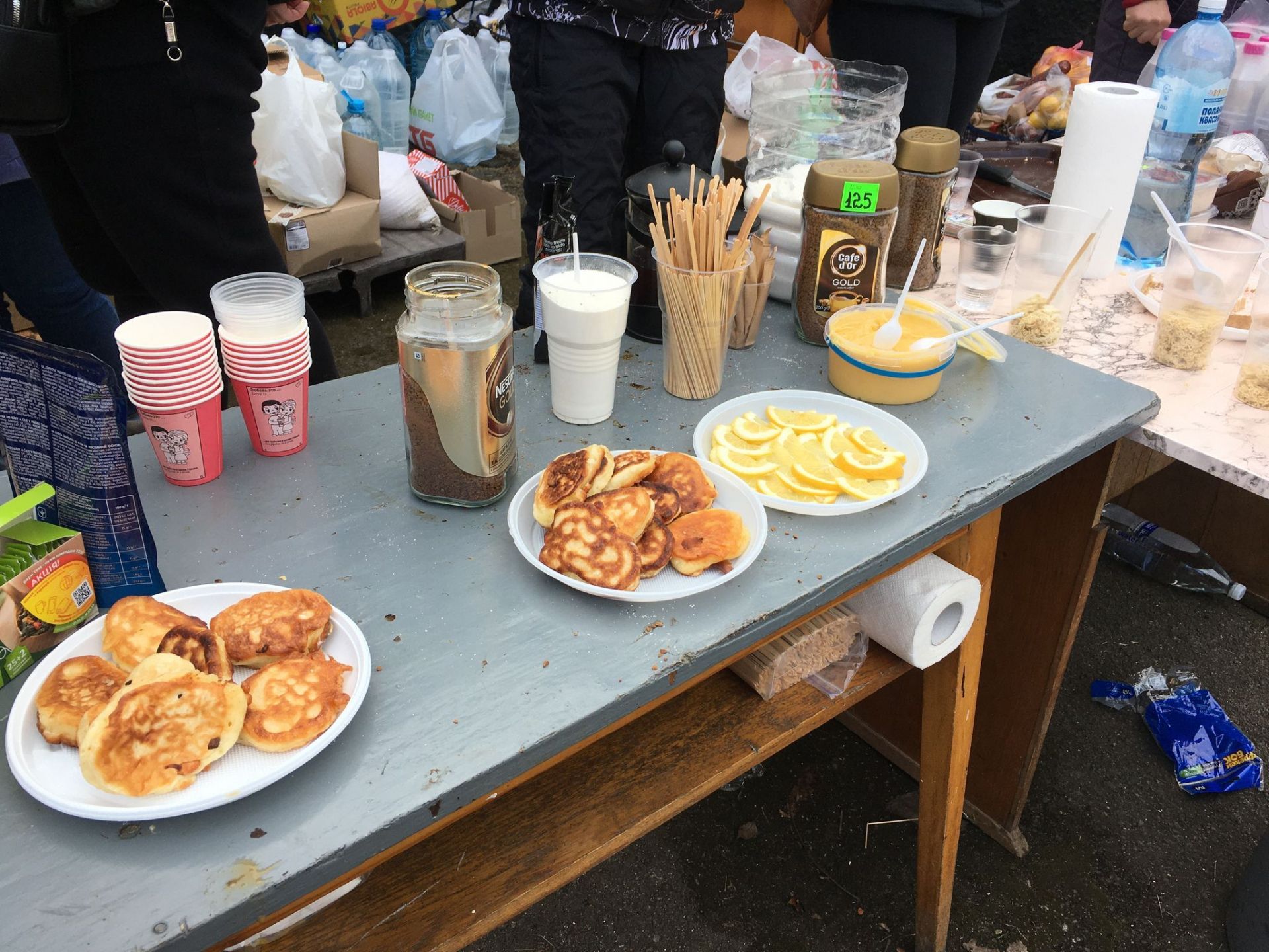 Неділя – на вулицях міста малолюдно. Я вирішила запропонувати свою допомогу групі волонтерів, які збирають необхідні речі та продукти для наших захисників. Мене радо прийняли і запропонували фасувати пакети із їжею для воїнів. Кожному воїну складали – печиво, солодощі, яблука, фрукти. «Першочергове необхідне цигарки, засоби гігієни, запальнички, сірники, медикаменти, кава, чай, одіяла, ліхтарі, синьо – жовтий скоч, вода бутильована, консервація, фрукти, лимони, джгути. В цей час кожен намагається бути корисним своїй країні і тому ми само організувались і збираємо допомогу воїнам. Наші земляки дуже активні, кожні 10 хвилин мені телефонують і приносять пакети із необхідними речами. Люди приносять гарячу їжу, щоб бійці могли поїсти. Дівчата роблять бутерброди, чай, каву. Дуже багато підприємців допомагає і простих людей.