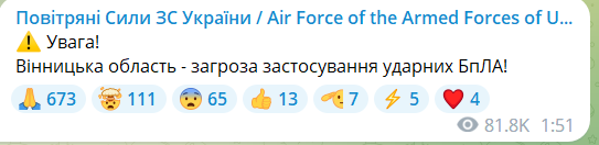 Близько другої години ночі була загроза застосування ворожих дронів і у нашій області