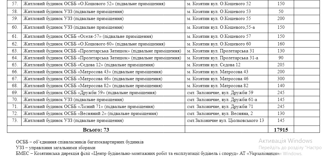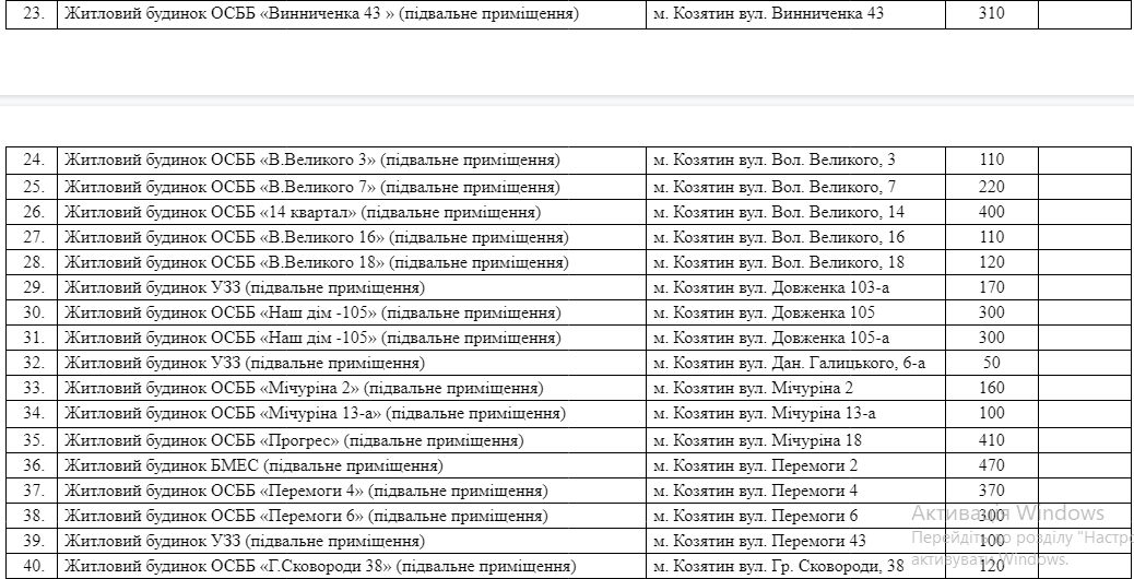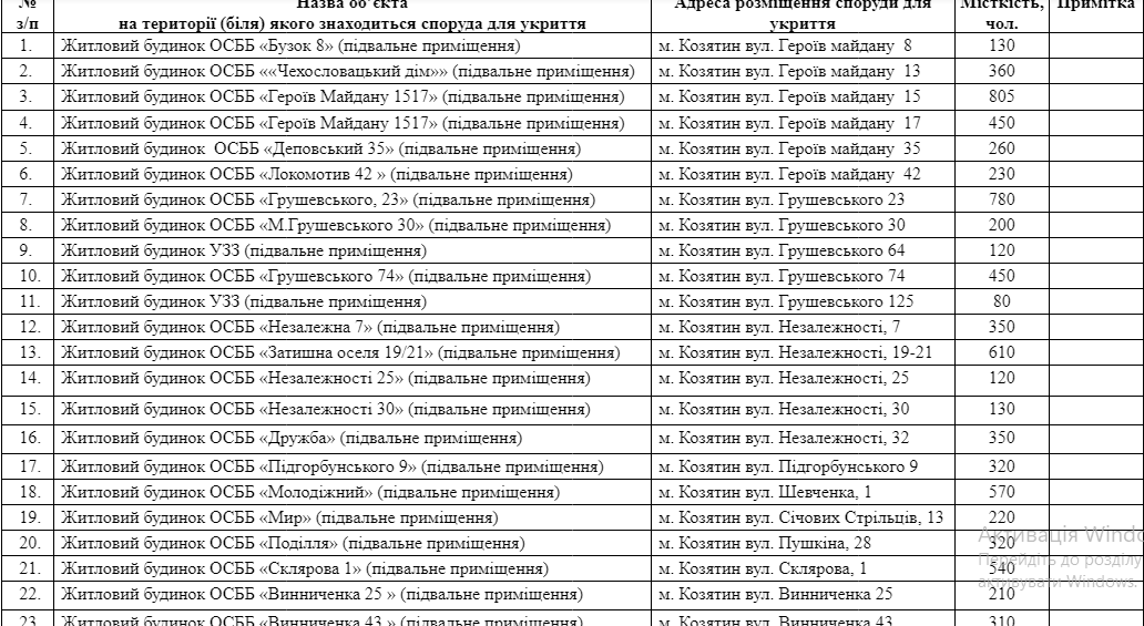 За інформацією Козятинської міської ради, фонд захисних споруд цивільного захисту налічує: