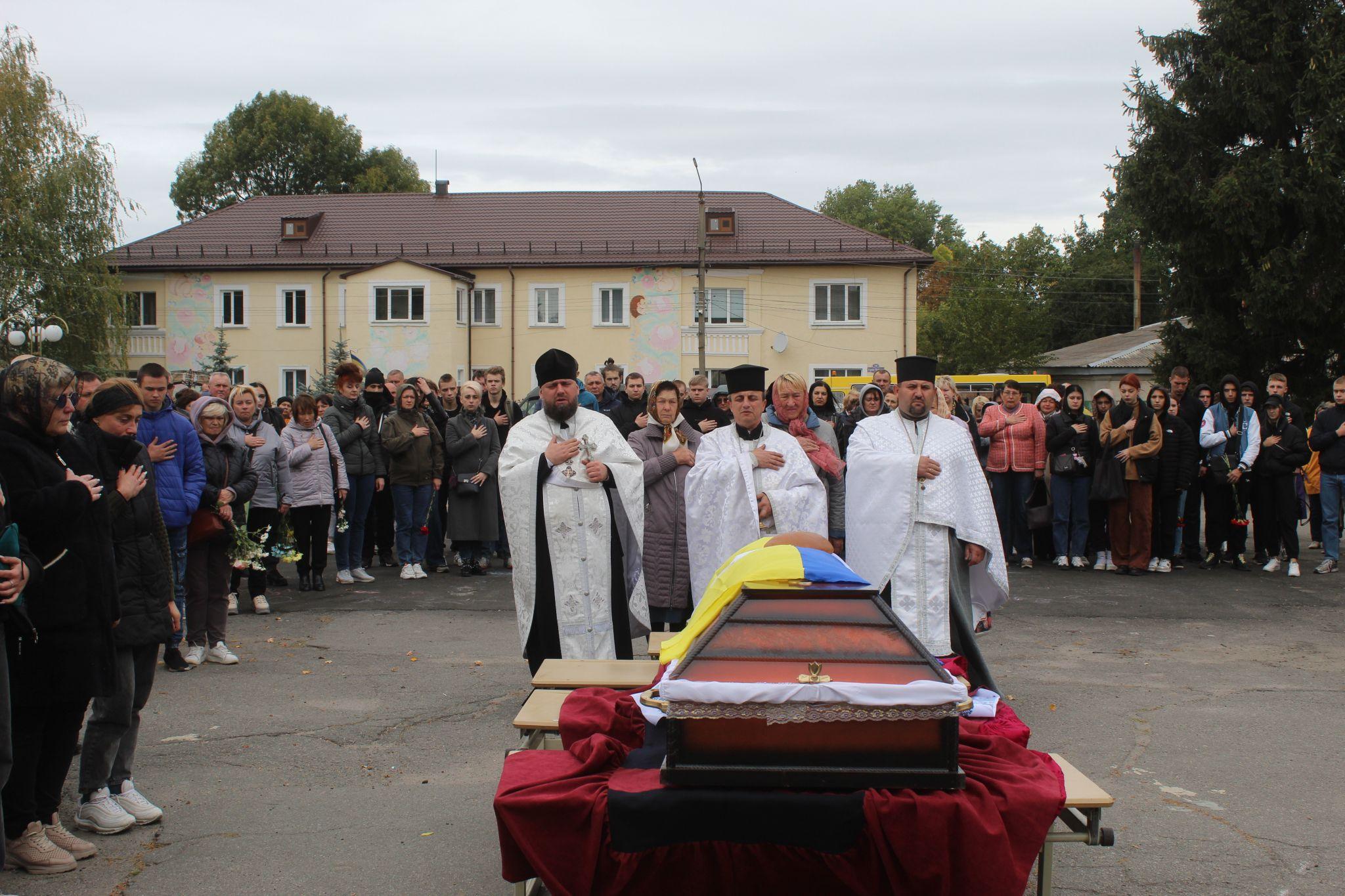 По завершенні служби Божої слово мали Отець Роман, міський голова Тетяна Єрмолаєва, заступник директора училища з навчальної роботи Олена Коломійчук та психолог ліцею № 5 Андрій Баландін. Всі виступаючі висловили слова підтримки батькам воїна та подякували їм за такого сина.