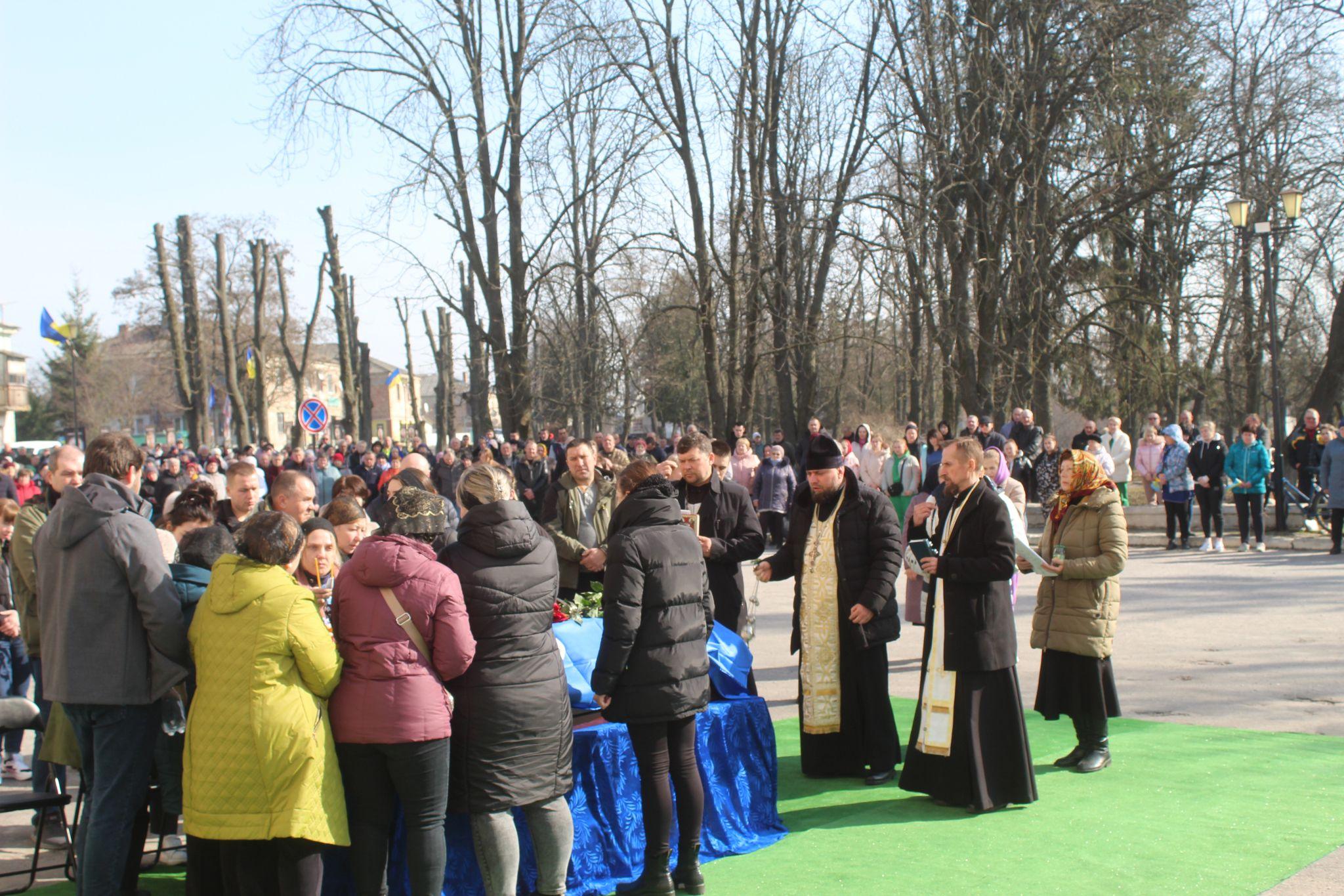 — Горить свіча і пам’яті сльоза додолу з неї краплями стікає. Земля ридає, плачуть небеса Героїв Україна проводжає… Шановні жителі громади, і знову сумна подія зібрала нас на цій площі. Жорстока кривава війна безжально забирає життя кращих синів України. Вже виплакані всі сльози за нашими захисниками. Вони йдуть у вічність молодими, у розквіті сил. Не встигли ми оговтатись від попередніх важких звісток в нашій громаді, як знову страшна новина.