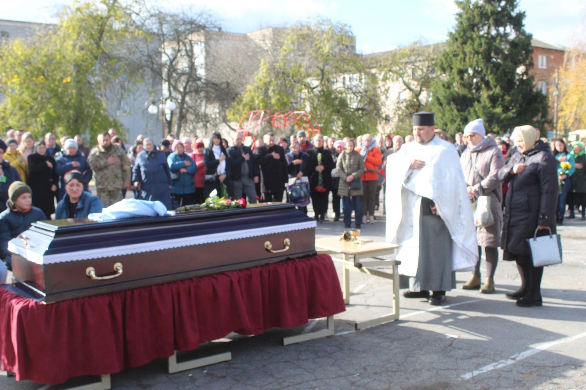- В будинку захисника службу Божу провів настоятель храму Іллі отець Роман, а громада села і міста прощалася з Героєм на площі.