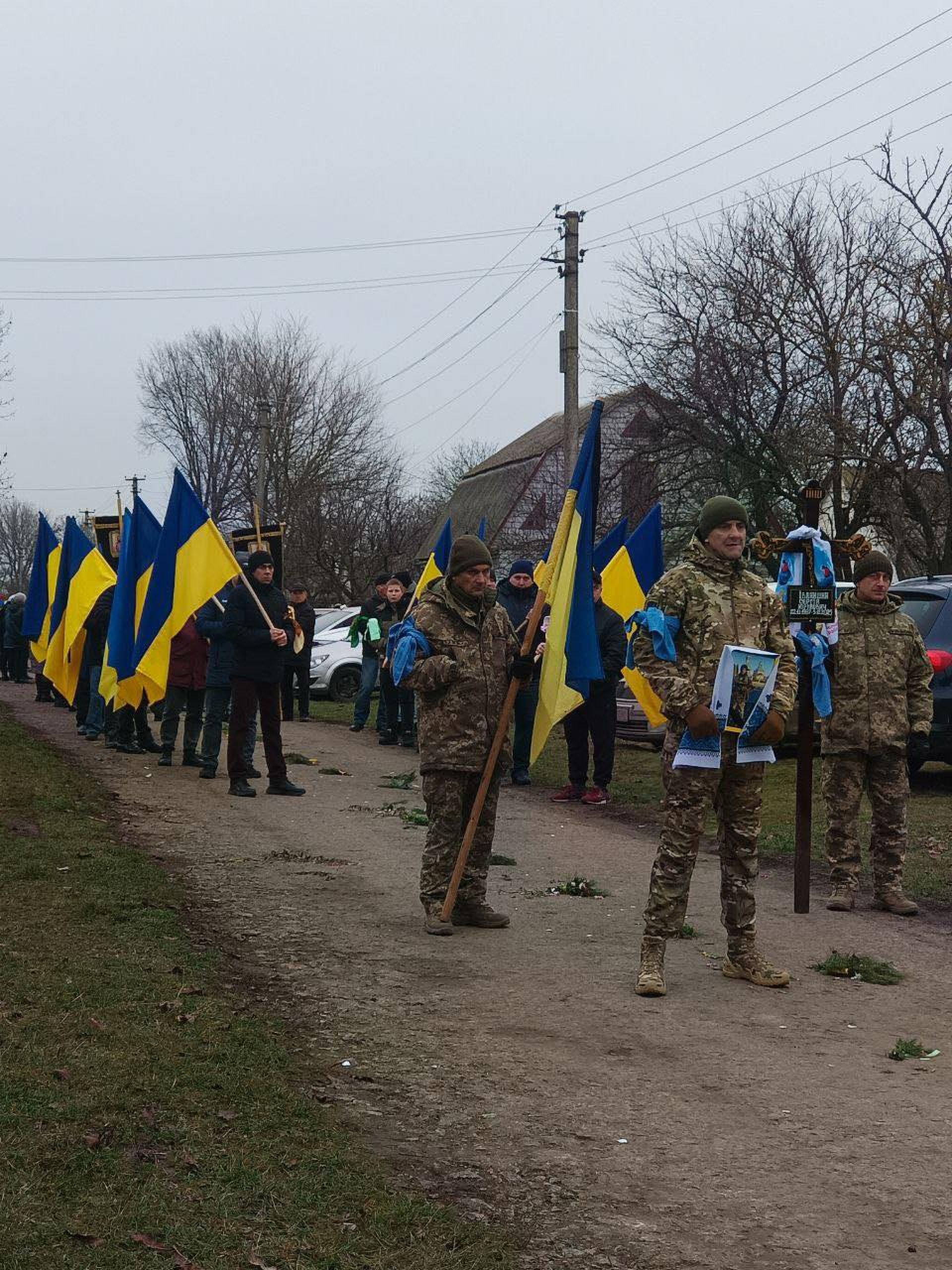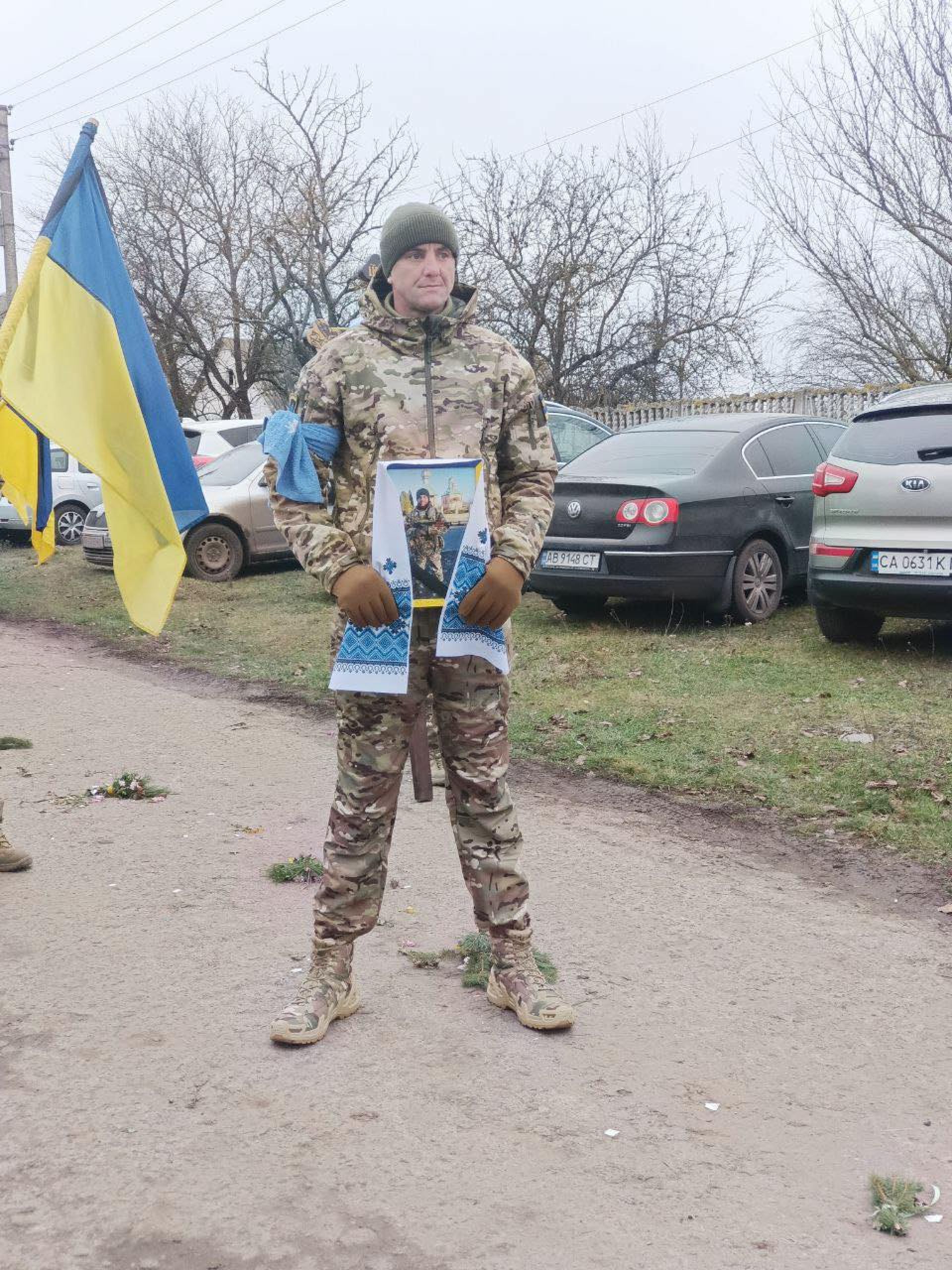 - Тіло молодого воїна супроводжував траурний кортеж із автівок, на яких майоріли синьо-жовті знамена.