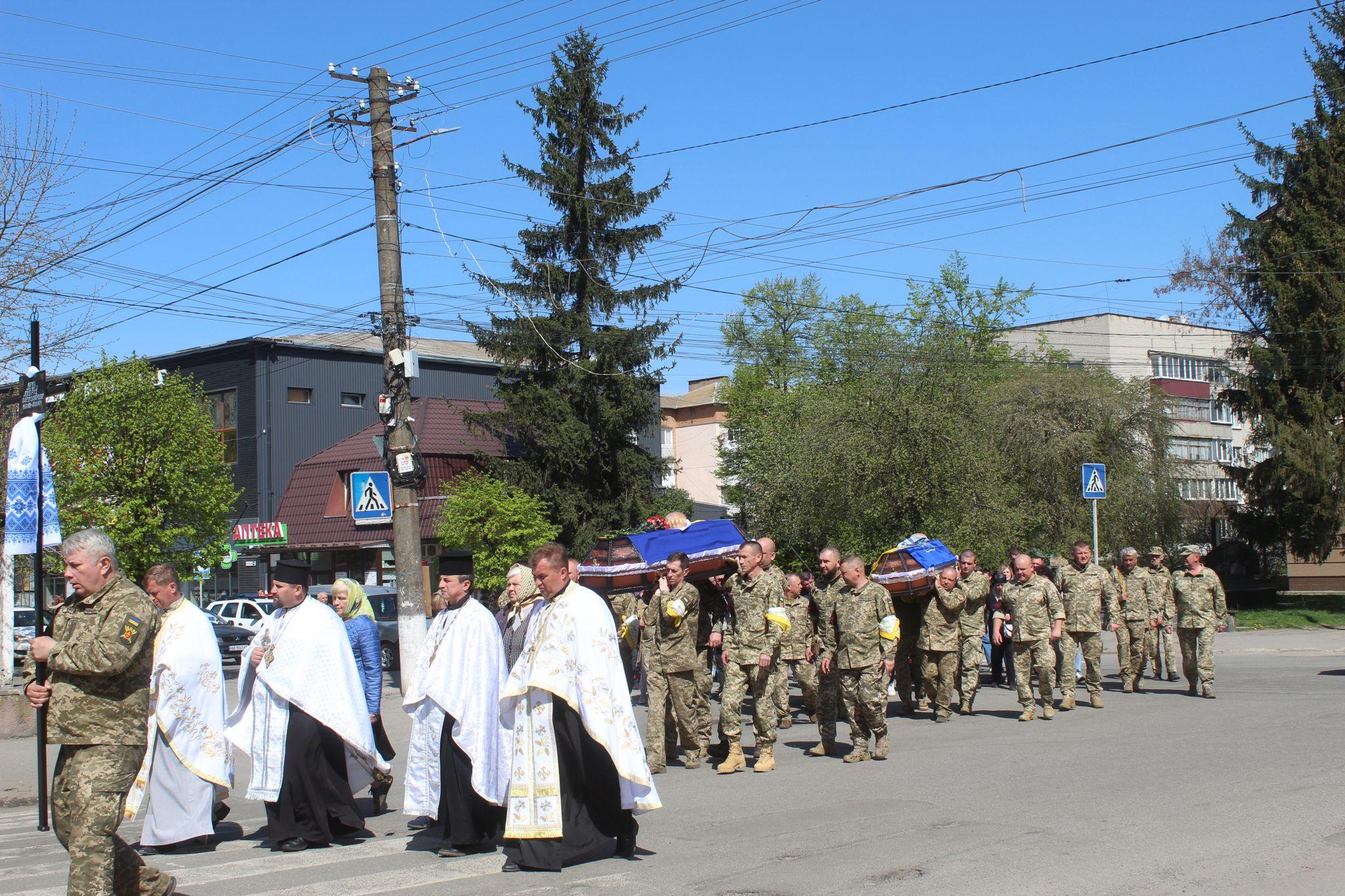 В церкві над двома домовинами схилили голови рідні і близькі загиблих воїнів, а до храму Покрови ще сходились люди. Хто поклав квіти біля трун воїнів, тримаючись за серце, запалив свічку, хто обіймами висловлював підтримку батькам і близким Героїв.