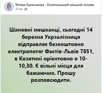 - Розповідаємо про напрямки приміських потягів, що будуть курсувати нашою Південно-Західною залізницею 14 березня.