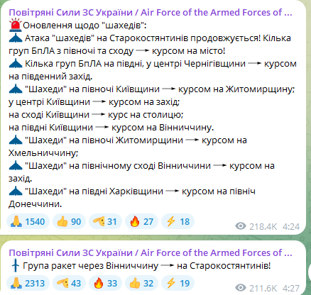 Комбінований удар другу ніч поспіль: групи ракет та дронів летіли і через Вінниччину