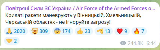 Повітряні Сили ЗСУ повідомляли про маневрування крилатих ракет на території нашої області