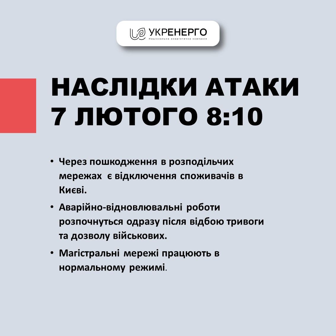 —Чергова масована атака проти нашої держави. Шість регіонів були під ударом ворога. Всі наші служби зараз працюють, щоб подолати наслідки цього терору. У Миколаєві десятки житлових будинків зруйновані, загинула одна людина. У Києві постраждали більше десяти людей, станом на зараз відомо про двох загиблих. Під завалами можуть бути люди. В столиці пошкоджені деякі комунікації, зокрема високовольтні кабелі. Триває робота, щоб якнайшвидше все відновити. Двоє людей постраждало на Харківщині, врятовано одну людину. У Львівській області рятувальники працюють на місці, — написав Президент України у своєму телеграм-каналі