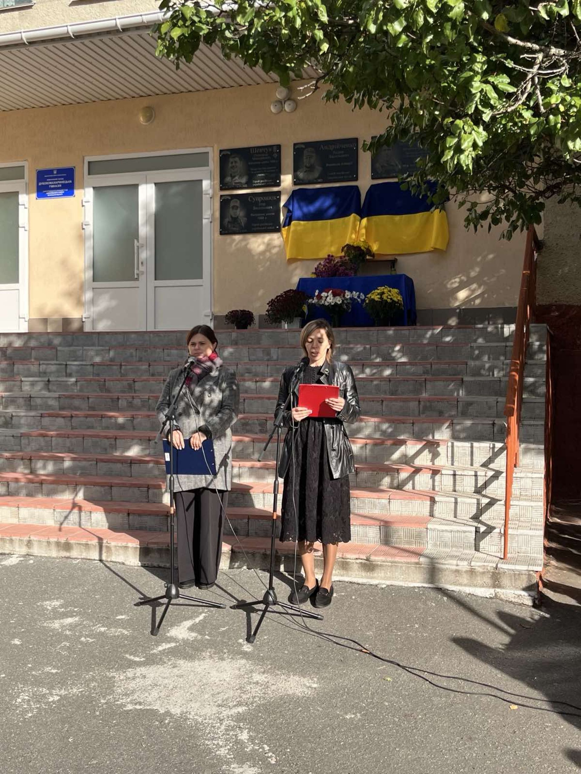 На лінійці-реквіємі із нагоди відкриття меморіальних дошок лунали слова вдячності, скорботи та стійкості.
