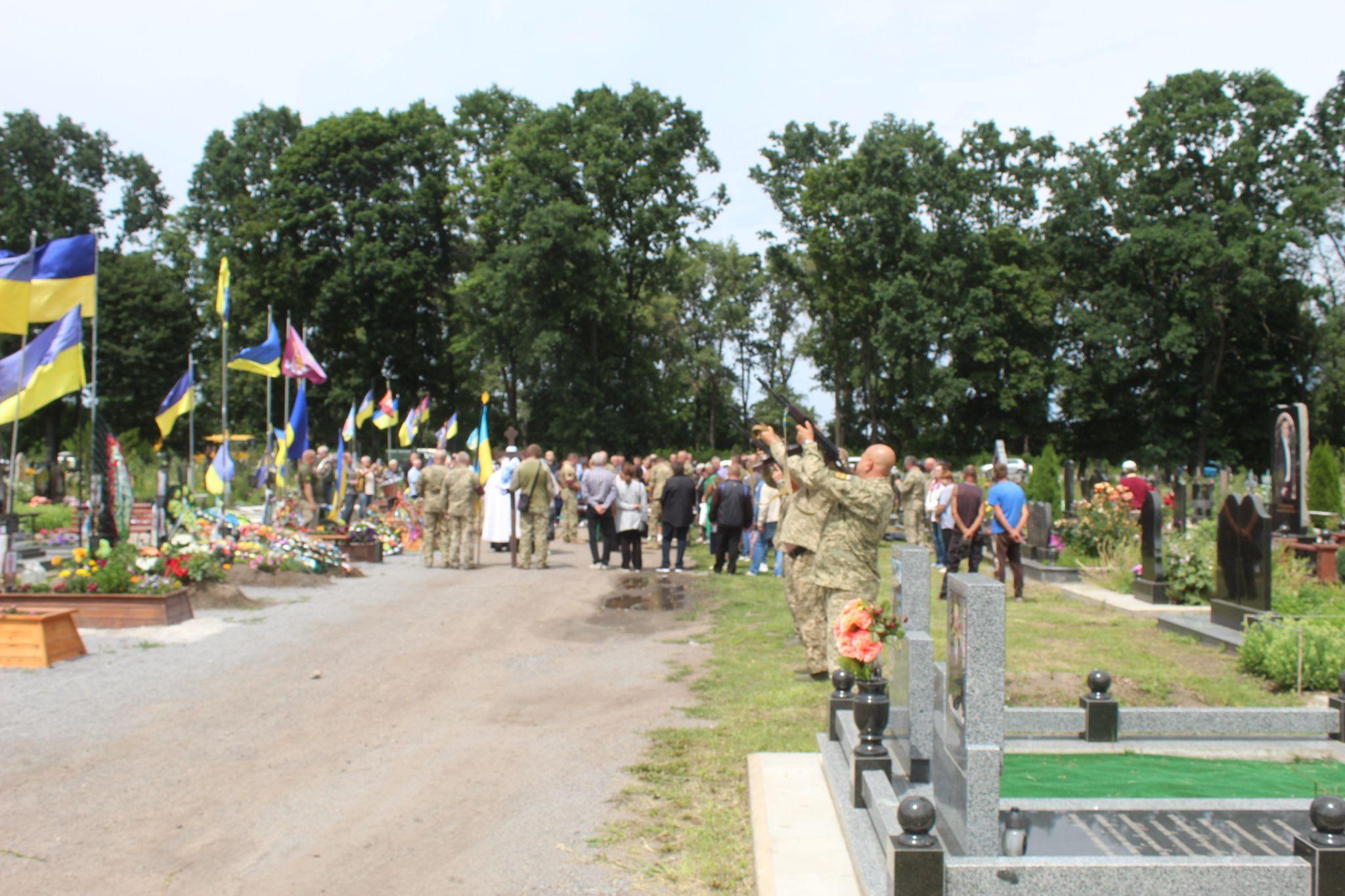 Попрощавшись траурна колона взяла курс до міського кладовища. Поховали воїна під гімн України і військовий салют від побратимів