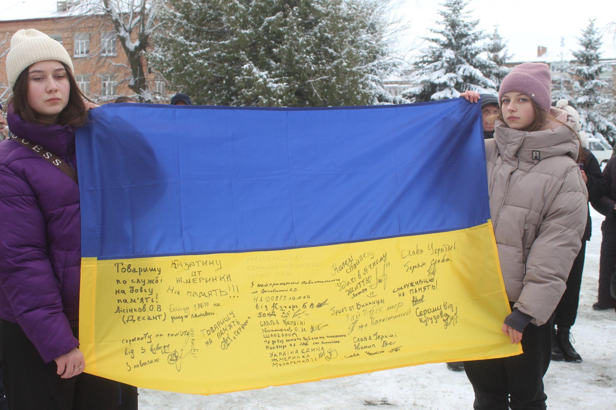 Продовжили прощання з Героєм на площі Героїв Майдану. Там за загиблим воїном пройшов мітинг скорботи.