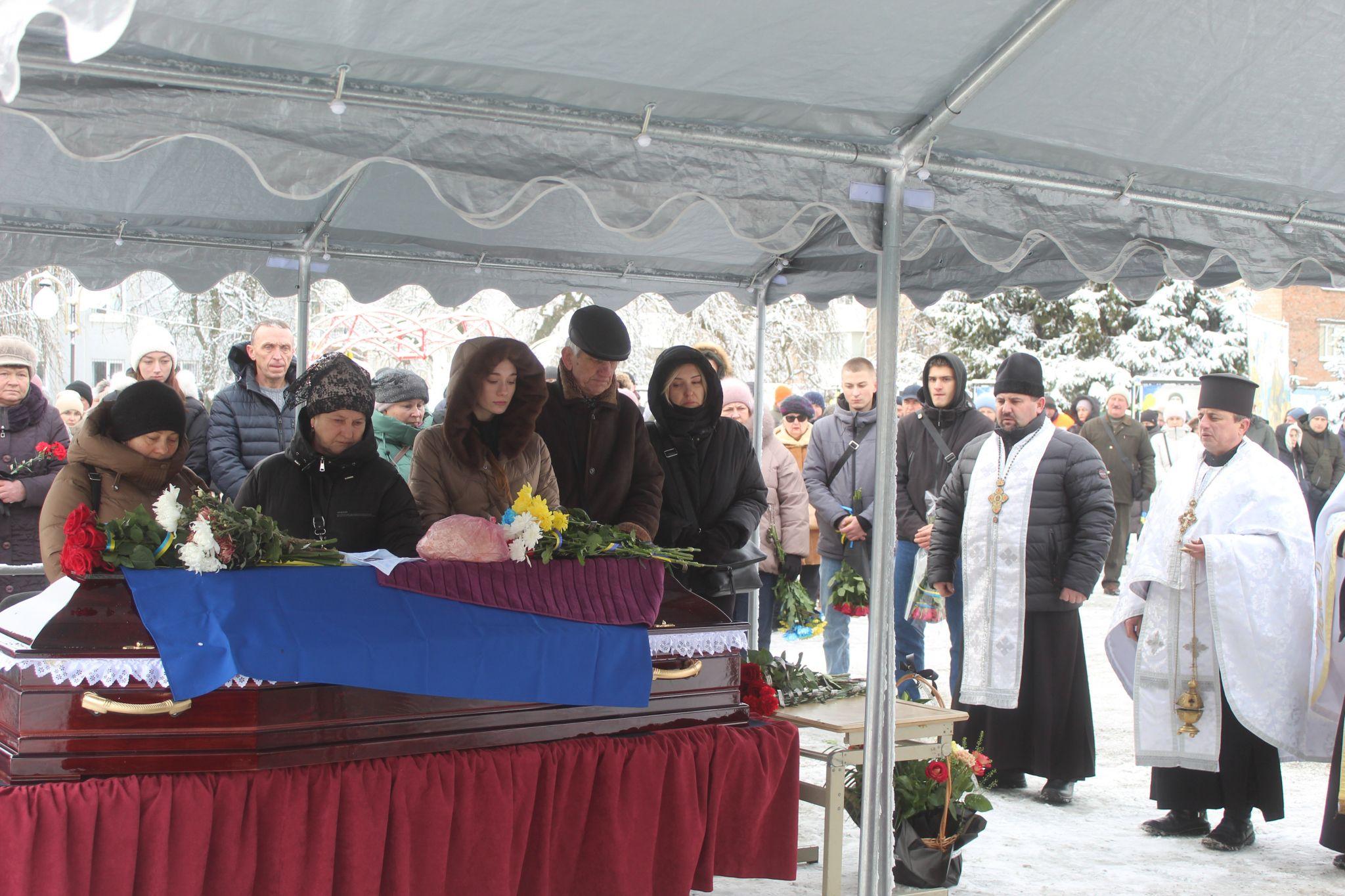 Чин похорон за загиблим воїном провели настоятель храму митрофорний протоієрей Роман Масира та настоятель Свято-Покровського храму митрофорний протоієрей Іван Дуник.