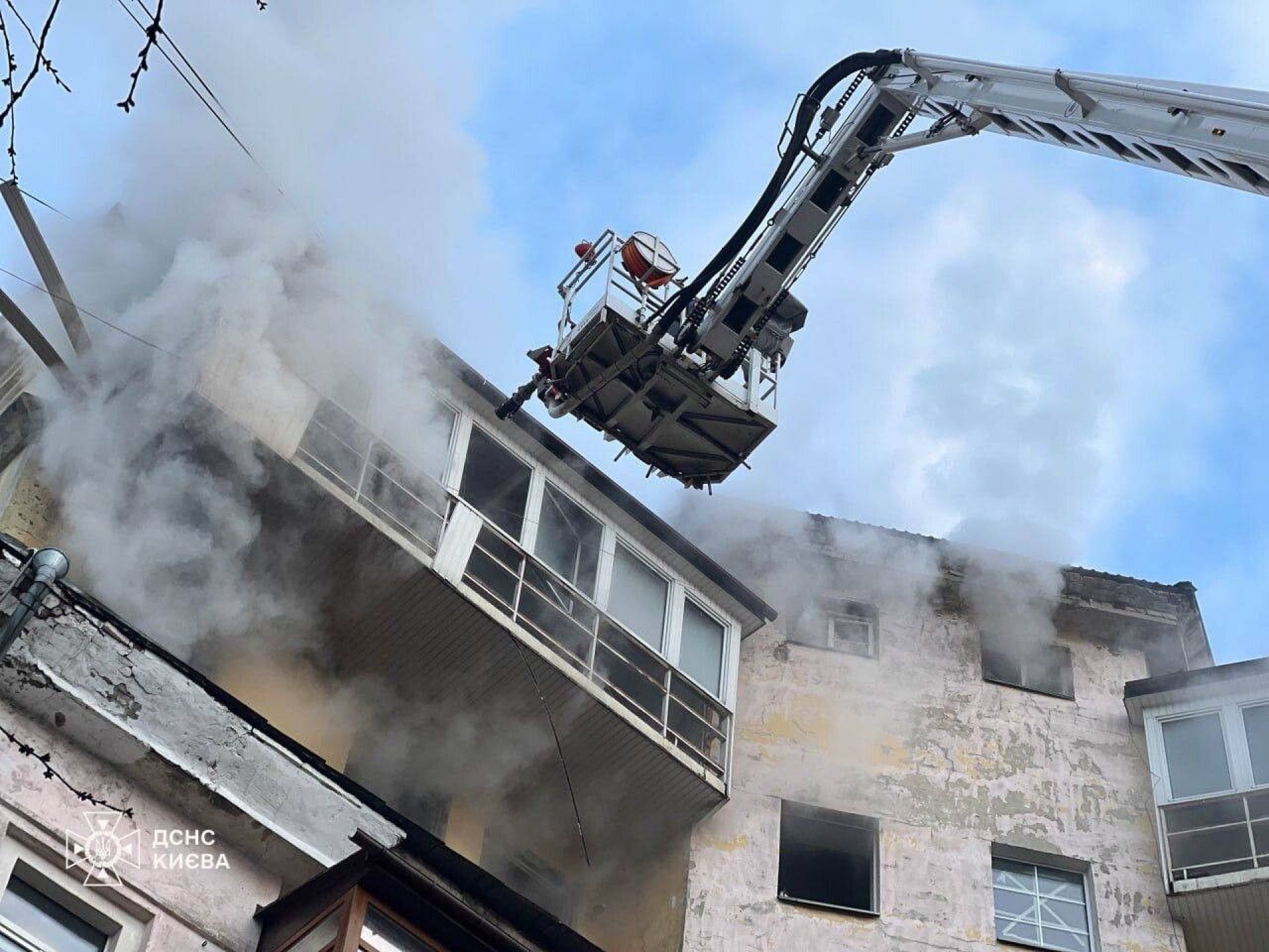 Вибухи вранці пролунали у Подільському, Шевченківському та Святошинському районах столиці, де спалахнула низка пожеж.