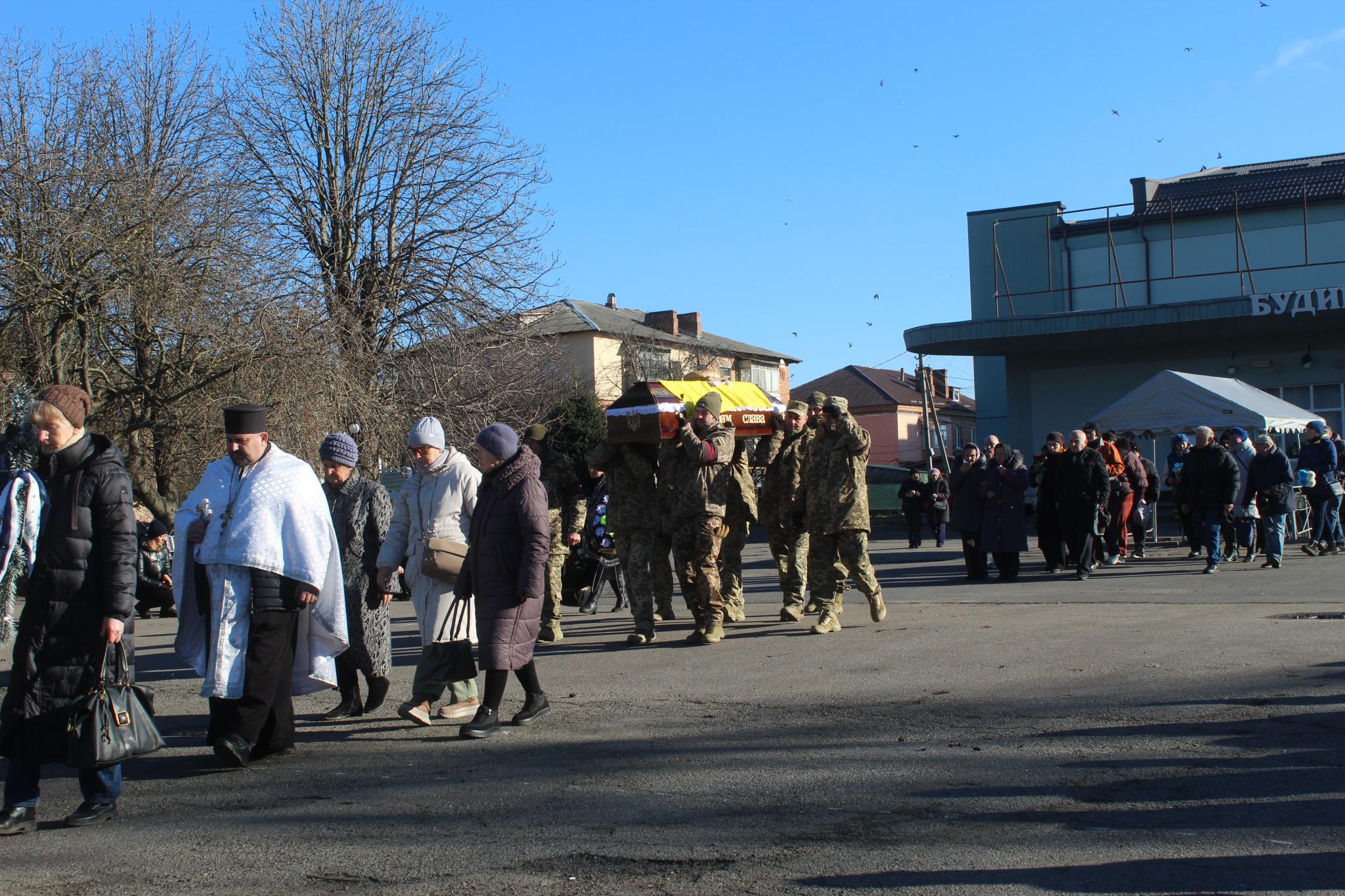 Зустріла громада Героя живим коридором по всьому траурному маршруту. Спочатку з ним прощалися у храмі, де за загиблим воїном чин похорон провів настоятель храму Покрови пресвятої Богородиці отець Василь.