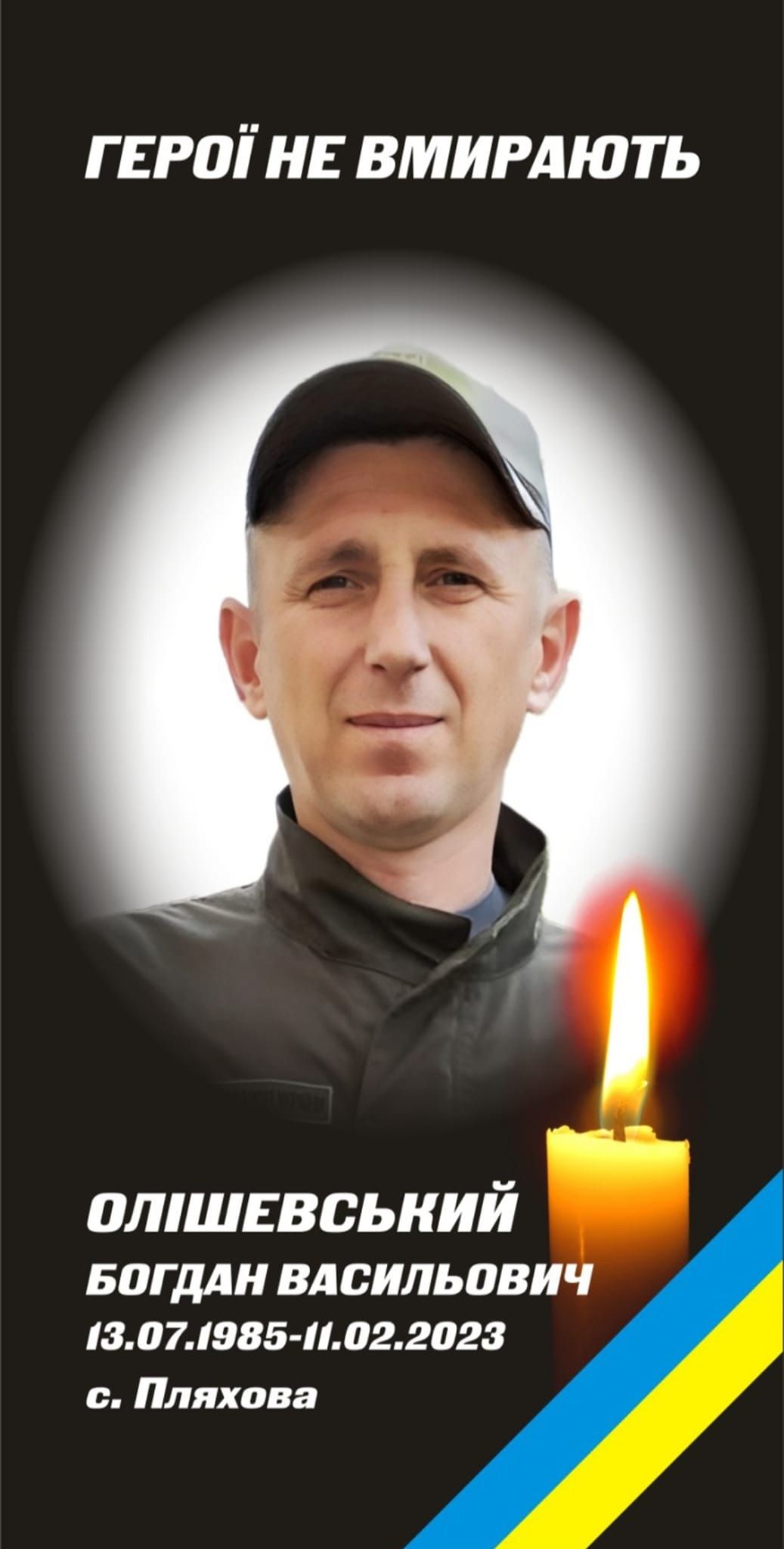- У неділю, 11 лютого минула річниця з дня загибелі нашого земляка, Героя з Глуховецької громади Богдана Олішевського.