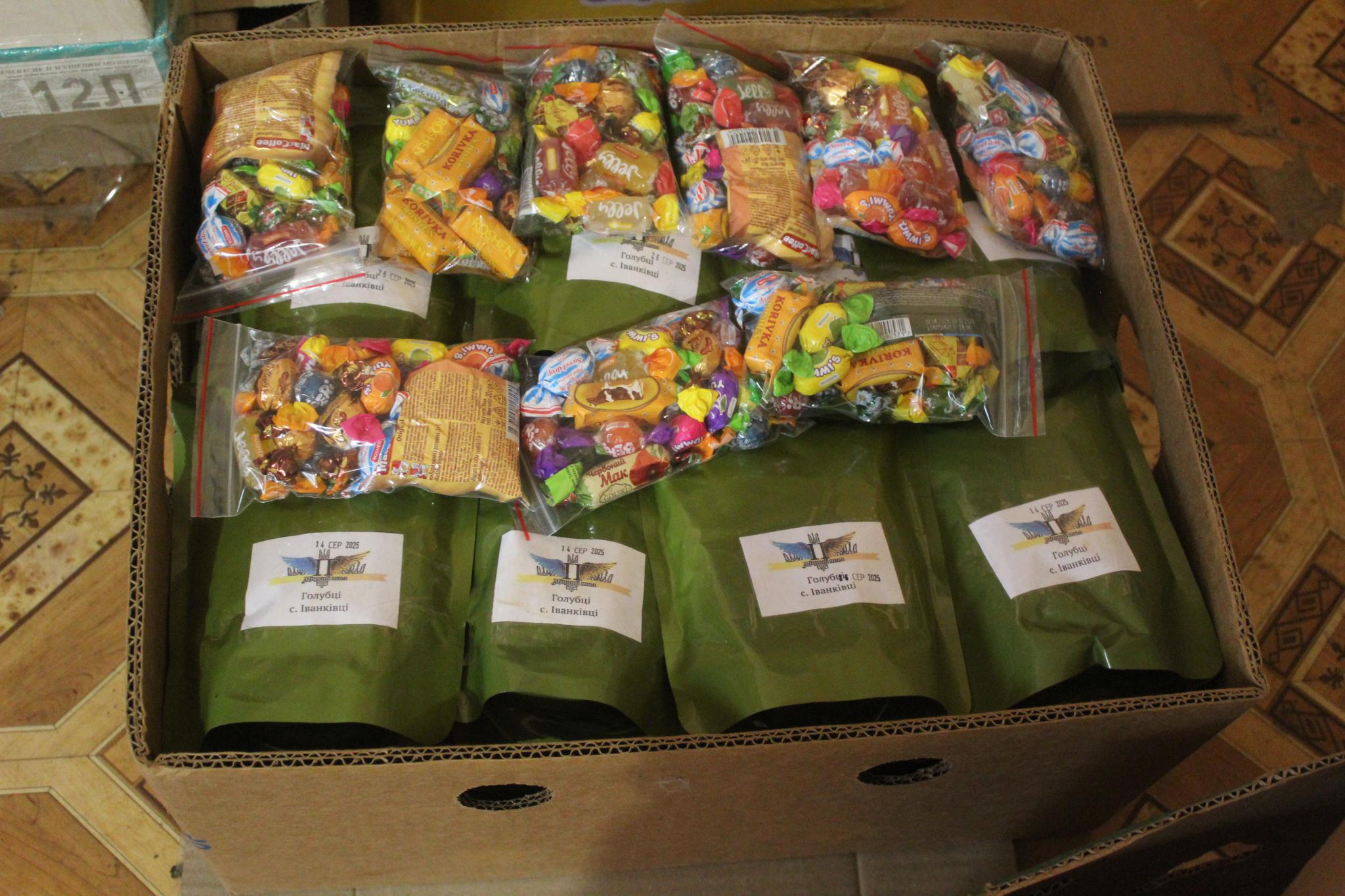 — За період, що вас у нас не було, нас провідували тільки інші волонтери і наші «золоті» солдати, — сказала Катерина та розповіла історію з переселенцем, який зараз воює на фронті. — Ми відправили хлопцям посилку, а він прочитав на упаковці, що посилка з Іванковець. Ох і радості було у нього! Навіть побратимам повідомив: «Хлопці, нам прийшла посилка з Іванковець, того села, де я зараз живу». Приїхав, привіз нам прапор військової частини і підписав нам його.